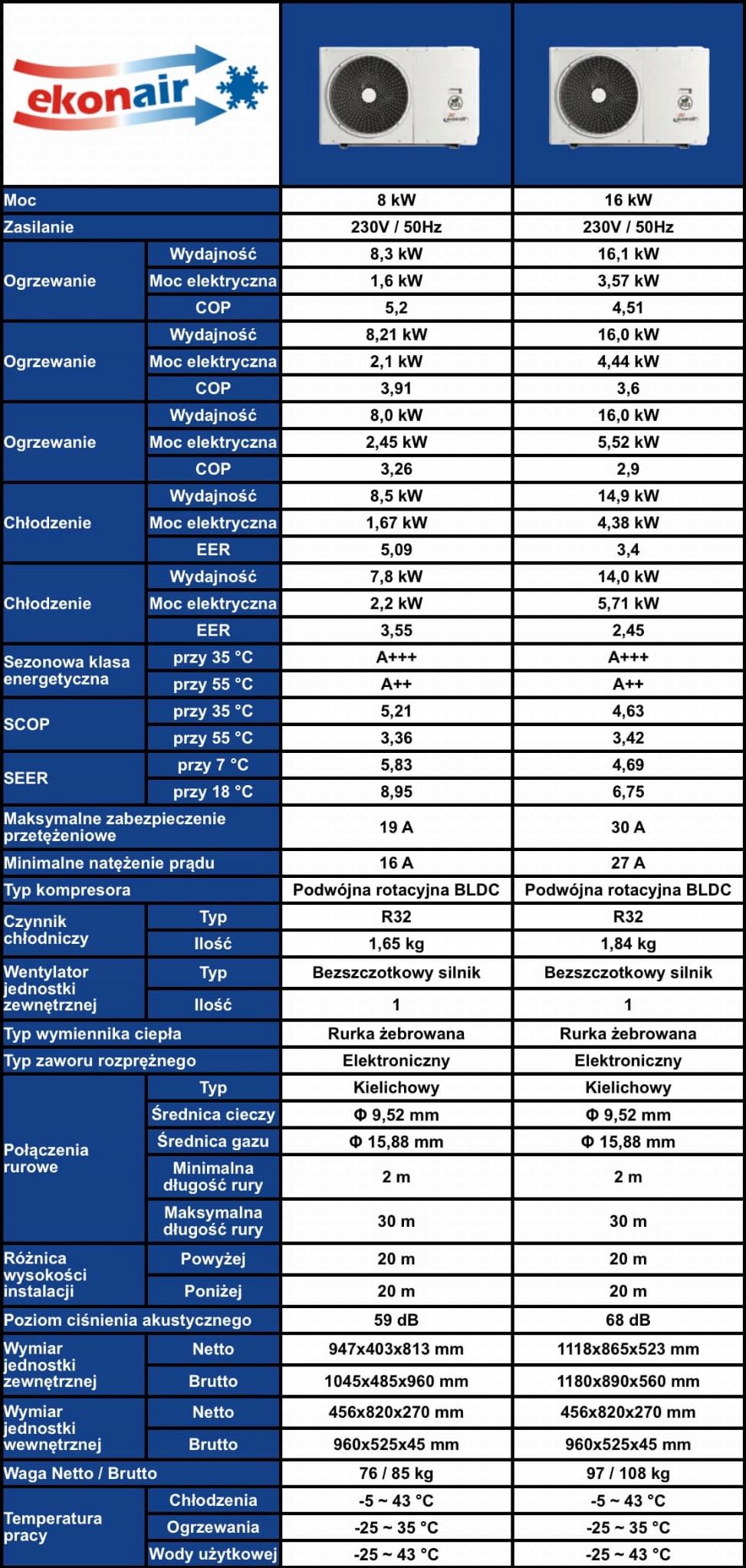 Теплові насоси «повітря-вода» забирають тепло із зовнішнього повітря та передають його в систему водопостачання. Вироблене тепло можна використовувати для опалення приміщень та/або як джерело гарячої води в будинку. Теплові насоси повітря-вода Ekonair є одними з найефективніших повітряних теплових насосів на ринку.