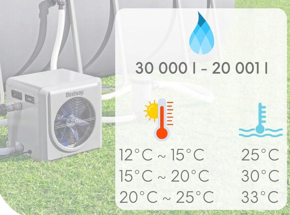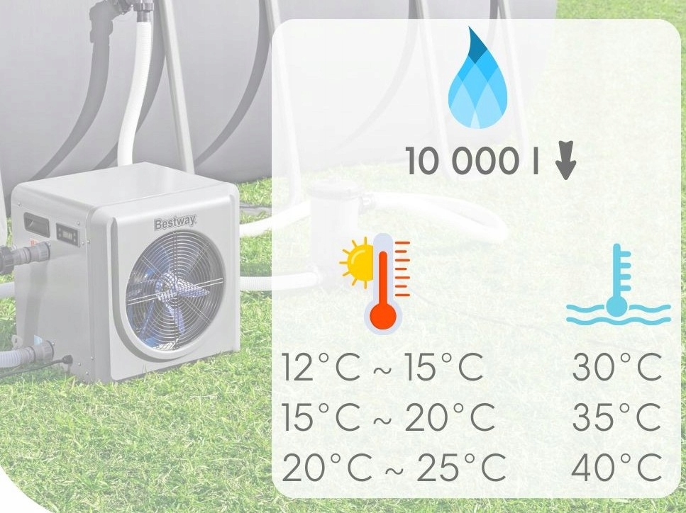 Сезон басейну швидко наближається! Не дозволяйте холодній воді зіпсувати свою ванну радість. Замовте Bestway 4,4 кВт теплового насоса сьогодні та насолоджуватися теплим басейном протягом усього сезону! 4