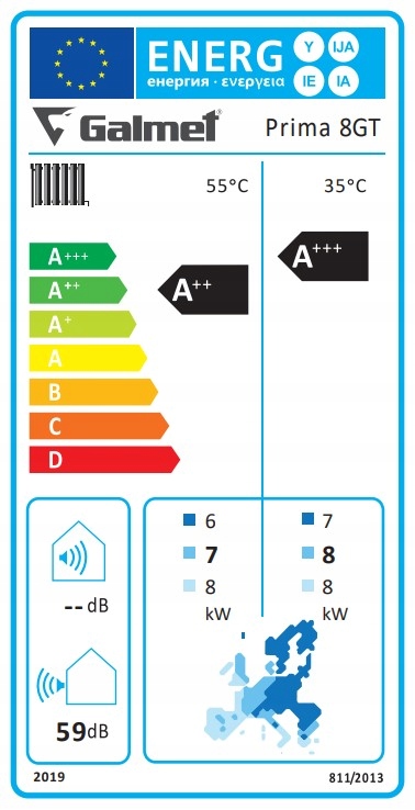 Це дуже ефективний агрегат із високою енергоефективністю. клас A+++ (для температури подачі 35°) і A++ (для температури подачі 55°).