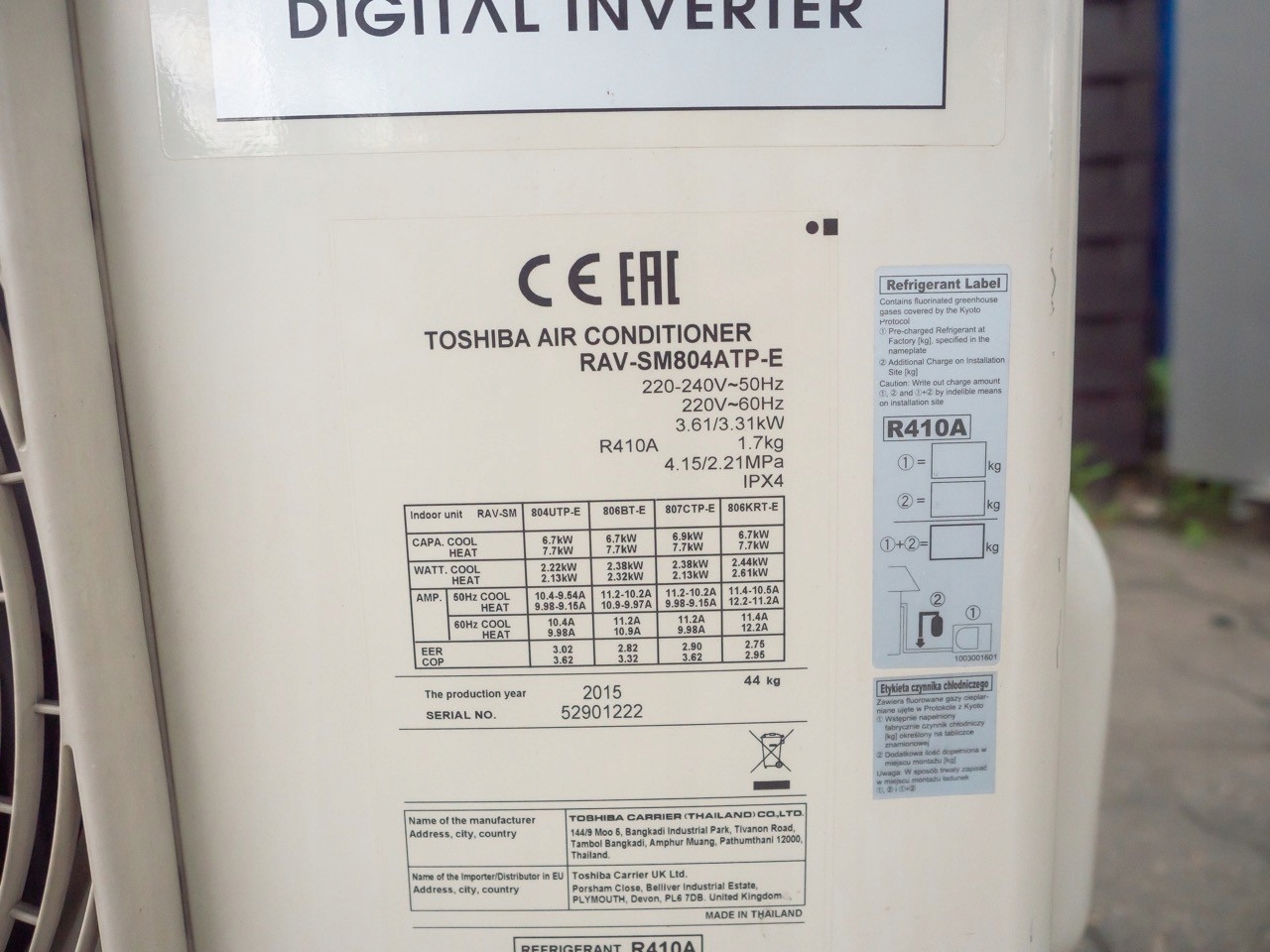- Холодоагент R 410A b>