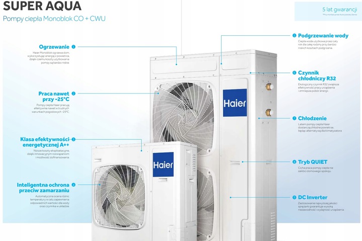 Haier Group є провідним світовим постачальником рішень HVAC. Заснована в 1984 році в Циндао. Haier з самого початку свого існування підтримує індивідуальний сталий розвиток своїх клієнтів за допомогою інноваційних рішень. За ці роки місцева фабрика виросла в глобальну компанію, чий оборот у 2014 році перевищив 32,3 мільйона доларів США. Використовуючи багаторічний досвід у сфері охолодження та кондиціонування повітря, компанія Haier вирішила також представити у своїй пропозиції теплові насоси повітря-вода. Дуже хороші технічні параметри з чудовим співвідношенням ціни та якості роблять моноблочні теплові насоси Haier успішними не лише як допоміжне джерело тепла, але й як автономну систему опалення в наших будинках.