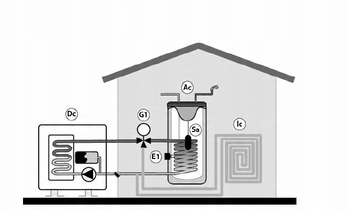 Контролер насоса за допомогою 3-ходового перемикаючого клапана автоматично контролює між нагріванням побутової води та опаленням/охолодженням будівлі.