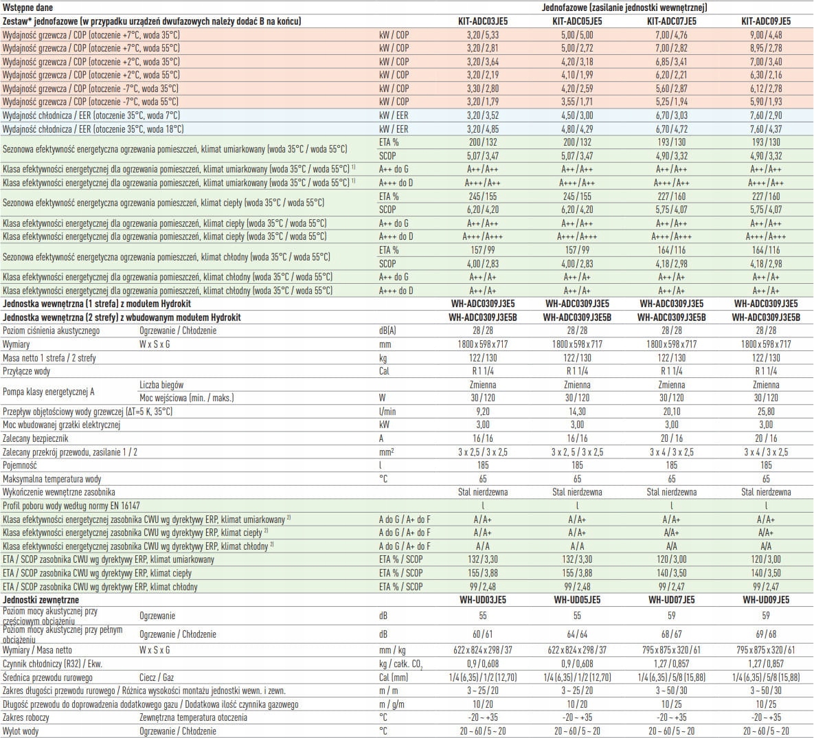 - Внутрішнього блоку: WH-ADC0309J3E5