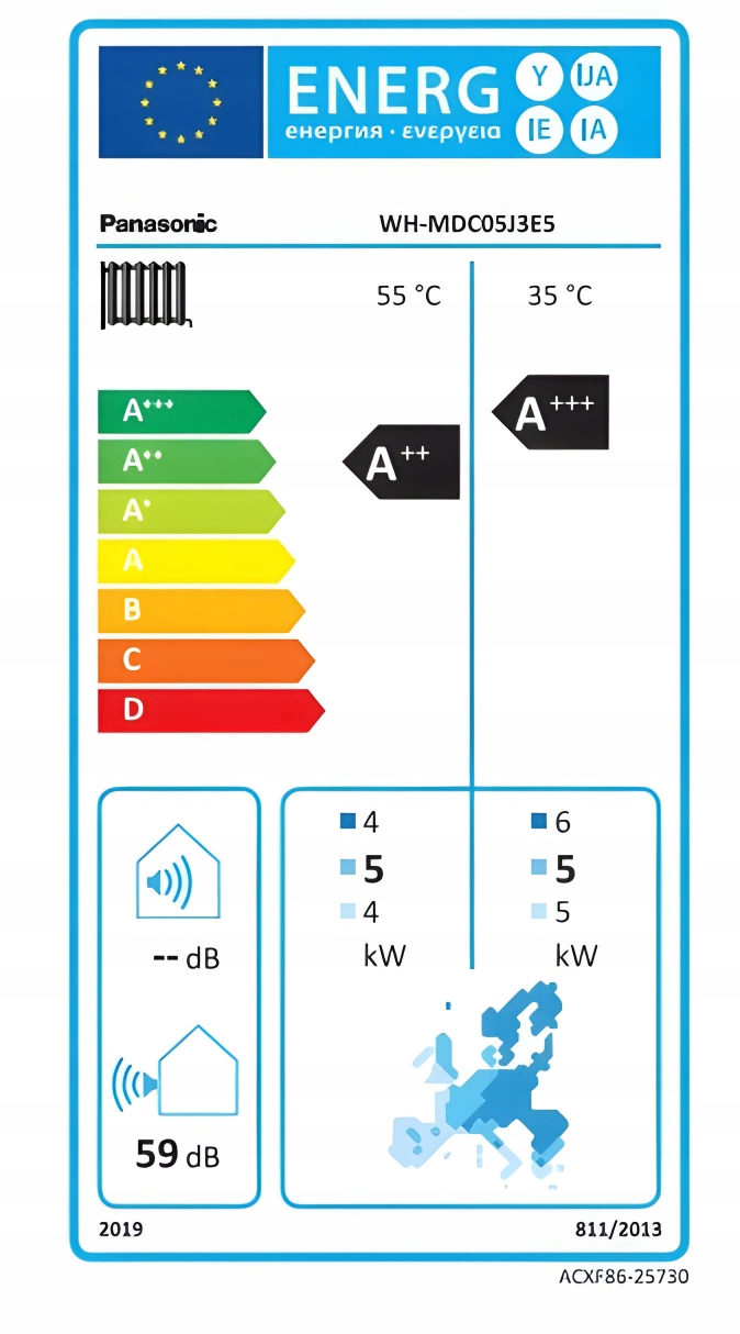 - Клас енергоефективності A+++ (температура води на виході: 35°C в помірний клімат )