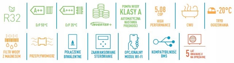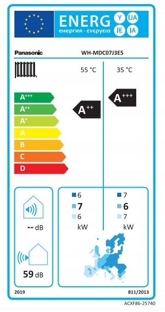 - Клас енергоефективності A+++ (температура води на виході: 35°C в помірний клімат )