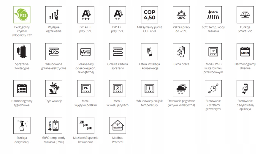 Він характеризується відмінним класом енергоефективності A+++ (для температури подачі 35°) і A++ (для температури подачі 55°).
