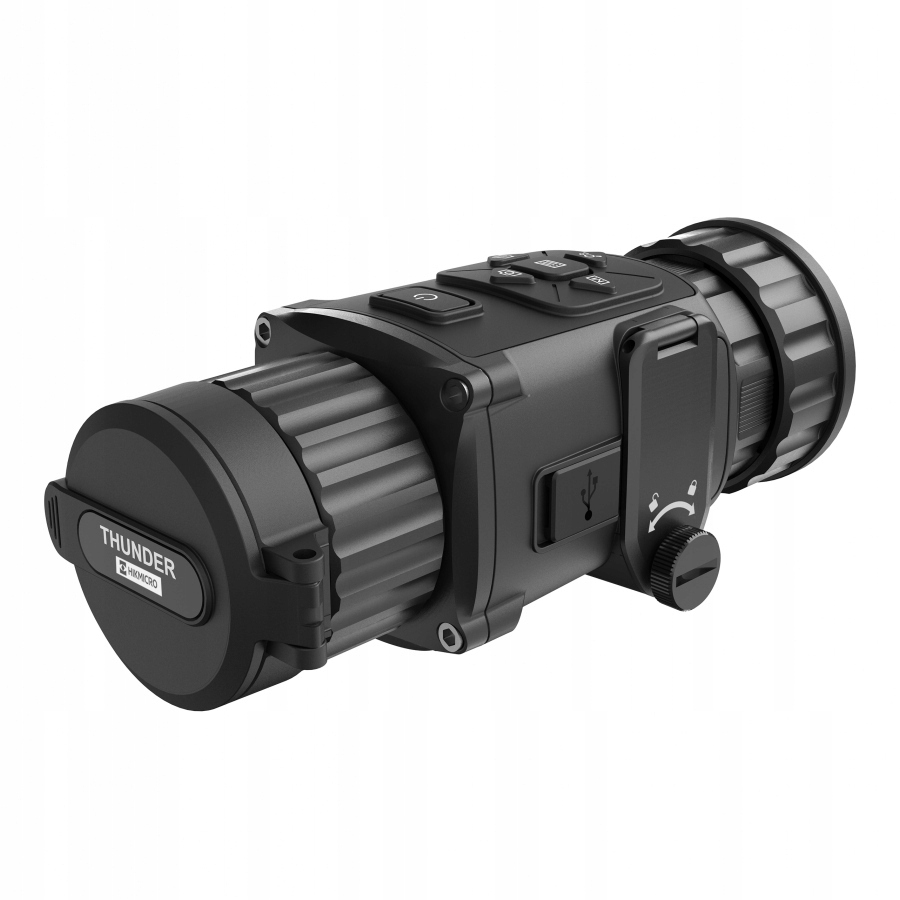 HIKMICRO Thunder PRO TE19C має легкий і міцний корпус із алюмінієвого сплаву (magnalia). Це робитьThunder Pro TE19C найлегшим прицілом у своєму класі на ринкуз розмірами 187,2 × 62,5 × 59,2 мм. Алюмінієва конструкція також гарантує стійкість до ударів, ударів і погодних умов. Корпус захищений від води, пилу та вологи (клас IP67), тому кепка стійка до будь-яких погодних умов, які можуть виникнути під час полювання. Надзвичайно важливо зберігати тишу під час переслідування дичини, тому для керування насадкою використовуються безшумні гумові кнопки.