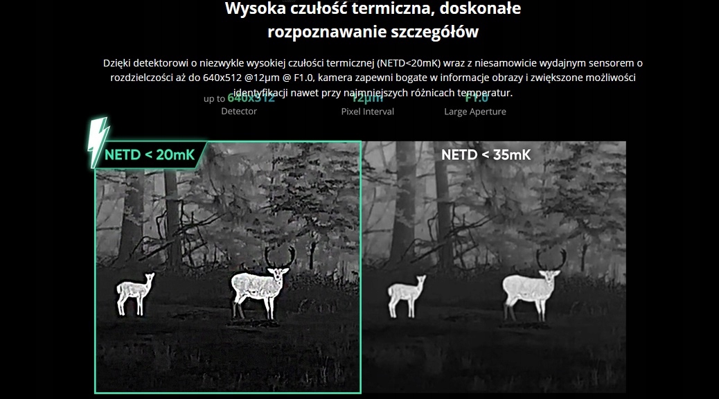HIKVISION, відповідальна за виробництво тепловізійних насадок і прицілів HIKMICRO, використовує надзвичайно передові рішення у своїх конструкціях, щоб забезпечити користувачам найвищу якість. Датчик серії Thunder із чутливістю менше 20 мК гарантує неперевершену точність пристрою, значно впливаючи на нашу здатність розпізнавати ціль. Це означає, що пристрій забезпечує зображення з надзвичайно високою деталізацією, що дозволяє нам ефективно його ідентифікувати.