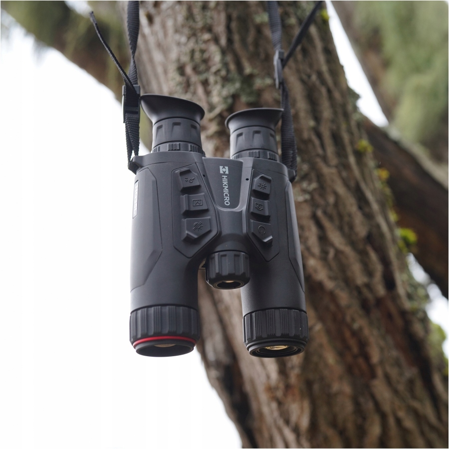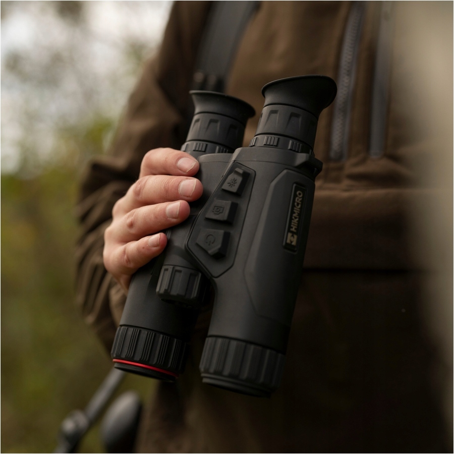 Пристрій використовує два вдосконалених датчика - тепловий з роздільною здатністю 640 × 512 і цифровий CMOS 2560 x 1440, що відповідає за зображення у видимому діапазоні світла та ІЧ. Завдяки цьому гібридному рішенню пристрій створює злиття зображень, забезпечуючи надзвичайну якість і деталізацію. Таким чином ми отримуємо можливість спостерігати за деталями цілі та оточення, чого немає у стандартних тепловізійних камер. Тепловізійний бінокль HIKMICRO Habrok також має вбудований інфрачервоний освітлювач, що працює в діапазоні 850 нм, що гарантує можливість роботи навіть в абсолютній темряві. Завдяки використаній оптичній системі ми можемо використовувати ручку для налаштування фокуса його променя.