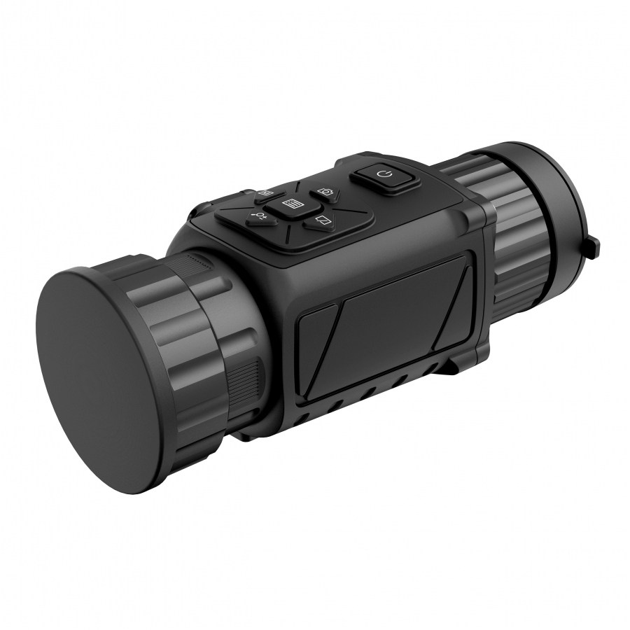 HIKMICRO Thunder PRO TE19C має легкий і міцний корпус із алюмінієвого сплаву (magnalia). Це робитьThunder Pro TE19C найлегшим прицілом у своєму класі на ринкуз розмірами 187,2 × 62,5 × 59,2 мм. Алюмінієва конструкція також гарантує стійкість до ударів, ударів і погодних умов. Корпус захищений від води, пилу та вологи (клас IP67), тому кепка стійка до будь-яких погодних умов, які можуть виникнути під час полювання. Під час переслідування дичини надзвичайно важливо дотримуватися тиші, тому для керування насадкою використовуються безшумні гумові кнопки.