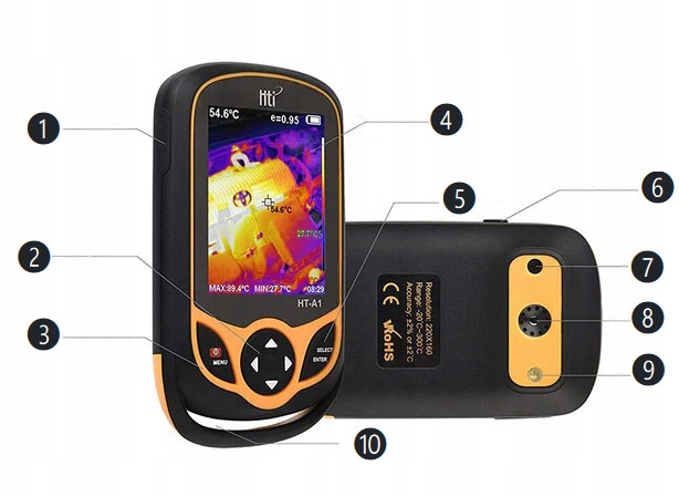 HT-A1 - це сучасна тепловізор з компактними розмірами, оснащений 3,2-дюймовим TFT-дисплеєм і вбудованою пам'яттю 3 Гб. Незважаючи на компактні розміри камери, вона має дуже хороші технічні параметри. Це зручно для щоденного використання. Тепловізійна камера дозволяє в режимі реального часу відображати розподіл температури на поверхні, застосовуючи кольорову палітру до зображення. Тепловізори широко використовуються в різних галузях промисловості, вони полегшують діагностику пошкоджень і допомагають швидко локалізувати елементи, що перегріваються. У будівництві та інженерії вони допомагають у визначенні містків тепла, вологи тощо...