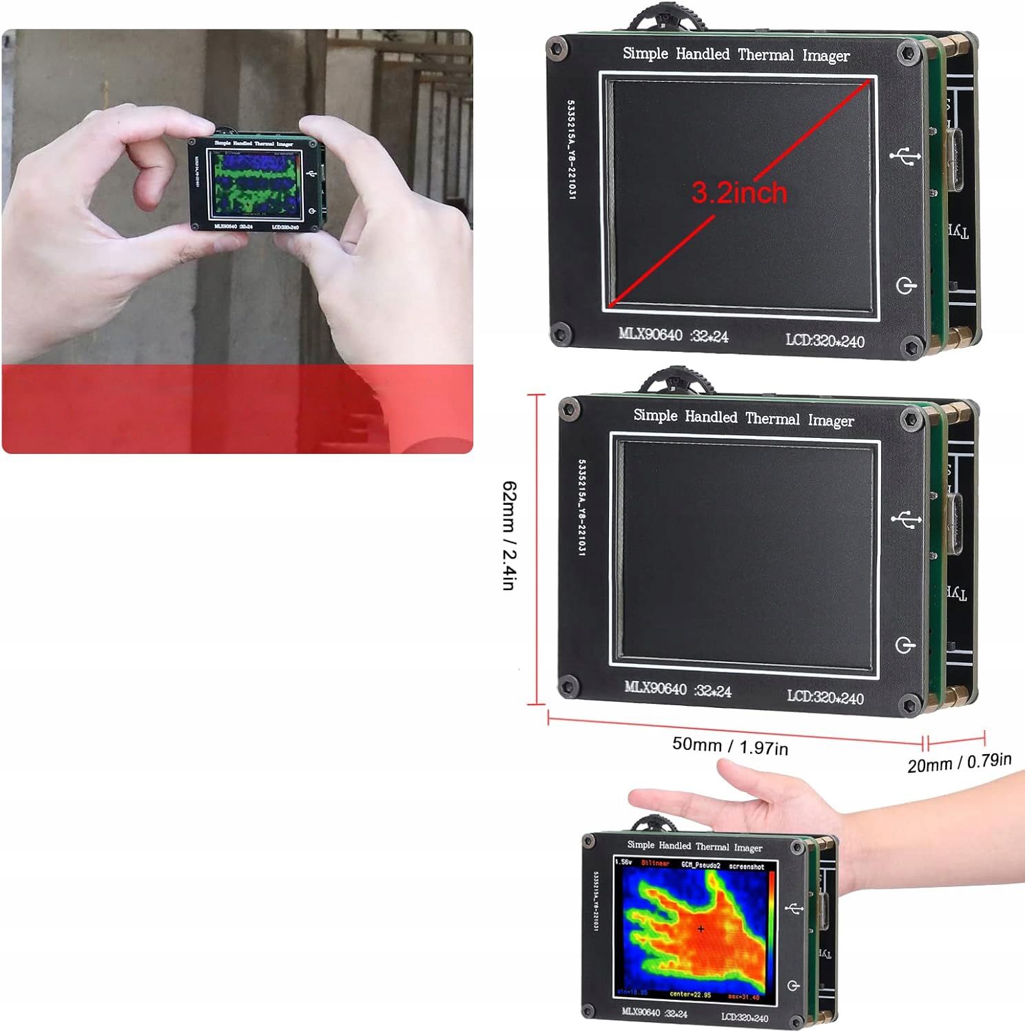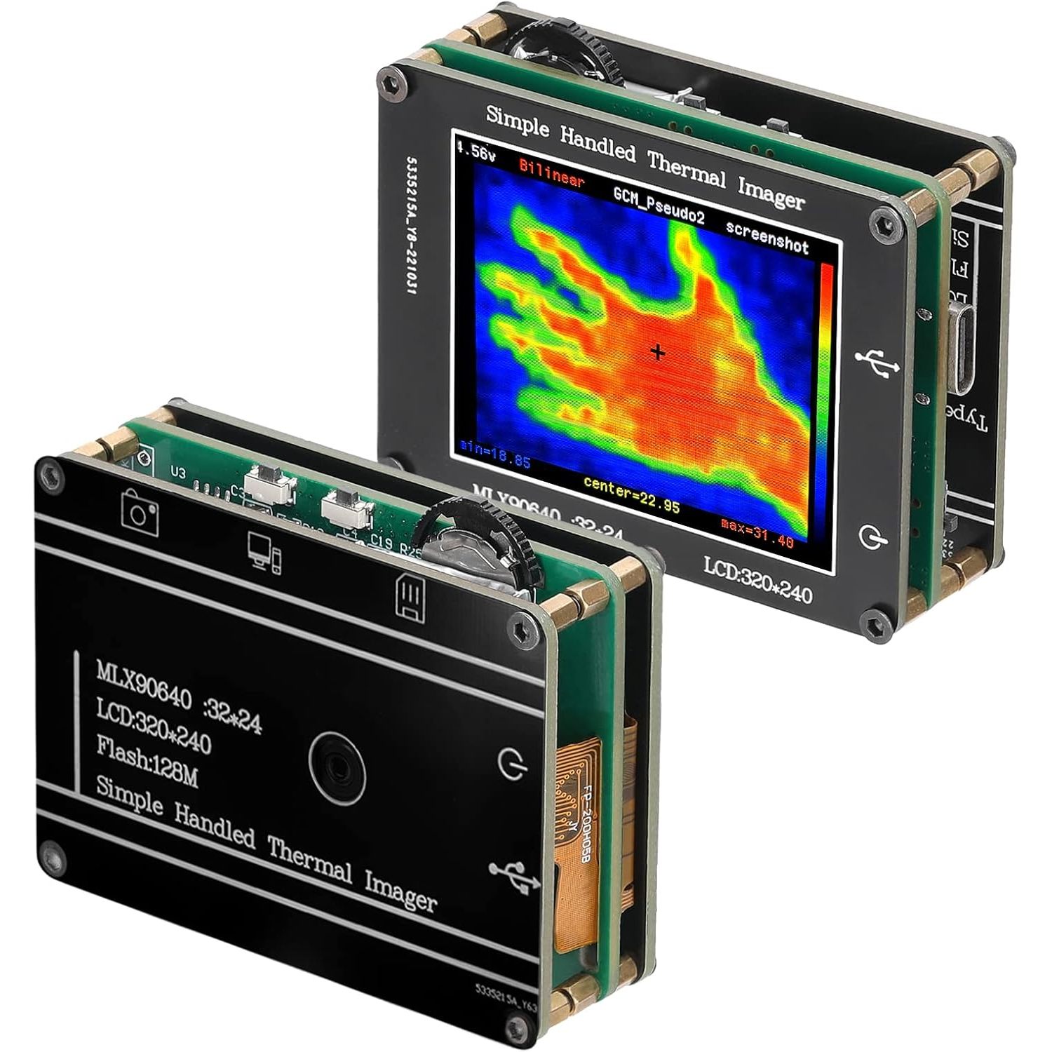 - Тепловізор використовує датчик інфрачервоного та дальнього інфрачервоного діапазону та роздільну здатність 24*32 пікселя для забезпечення чіткого зображення.