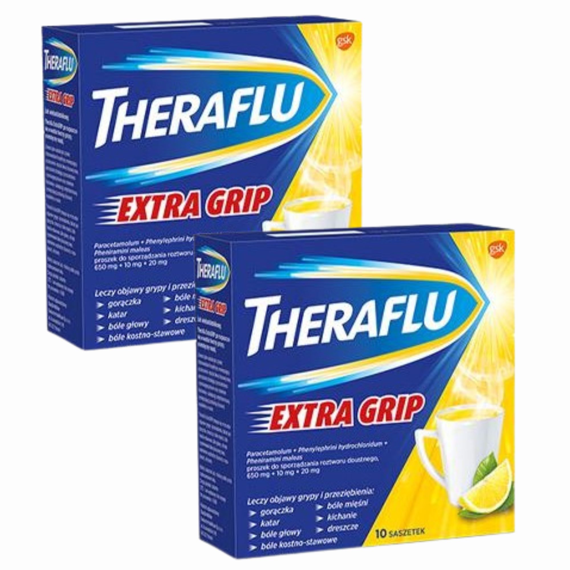 Набір 2x THERAFLU EXTRA GRIP, для лікування симптомів застуди та грипу, 10 пакетиків.