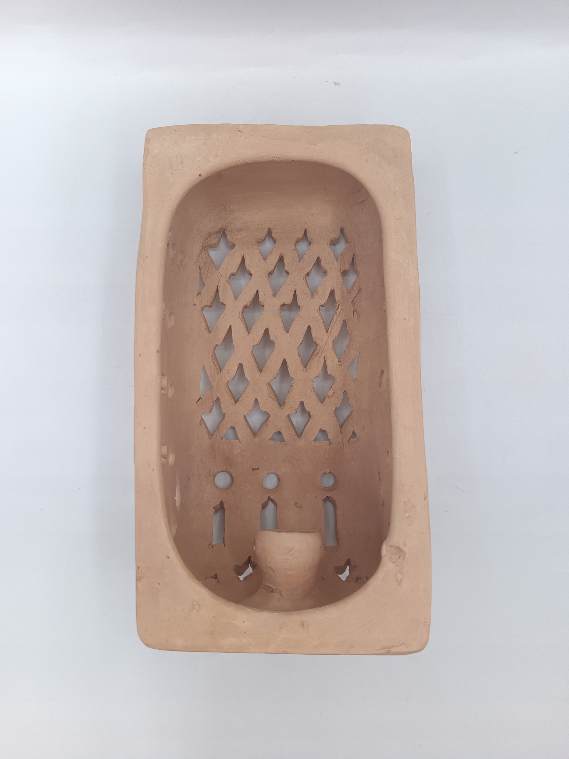 Ручна робота з теракоти/глини, ажурна, для підвішування на стіну, для стандартної свічки діаметром 2,2 см.