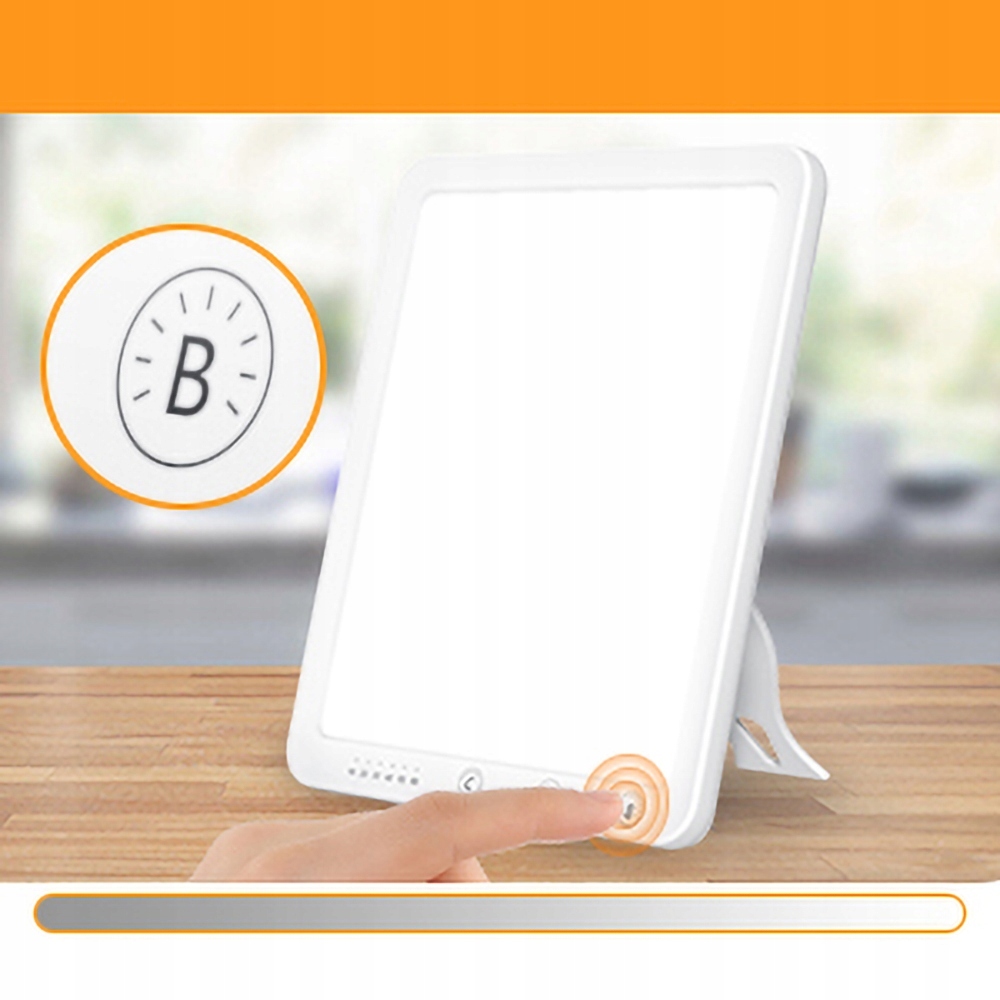 Медичний продукт: Шимітуючи денне світло, лампа денного світла підходить для використання у випадку симптомів дефіциту світла, таких як відсутність рівноваги, зменшення настрою або відсутність енергії та приводу, і тому він ідеально підходить для темної осінньої та зимової днів. Доступні люкс, 3 варіанти яскравості (білі, натуральні та тепло). Ви можете вибрати бажану яскравість. Світлодіодна технологія без мерехтіння та ультрафіолетового випромінювання