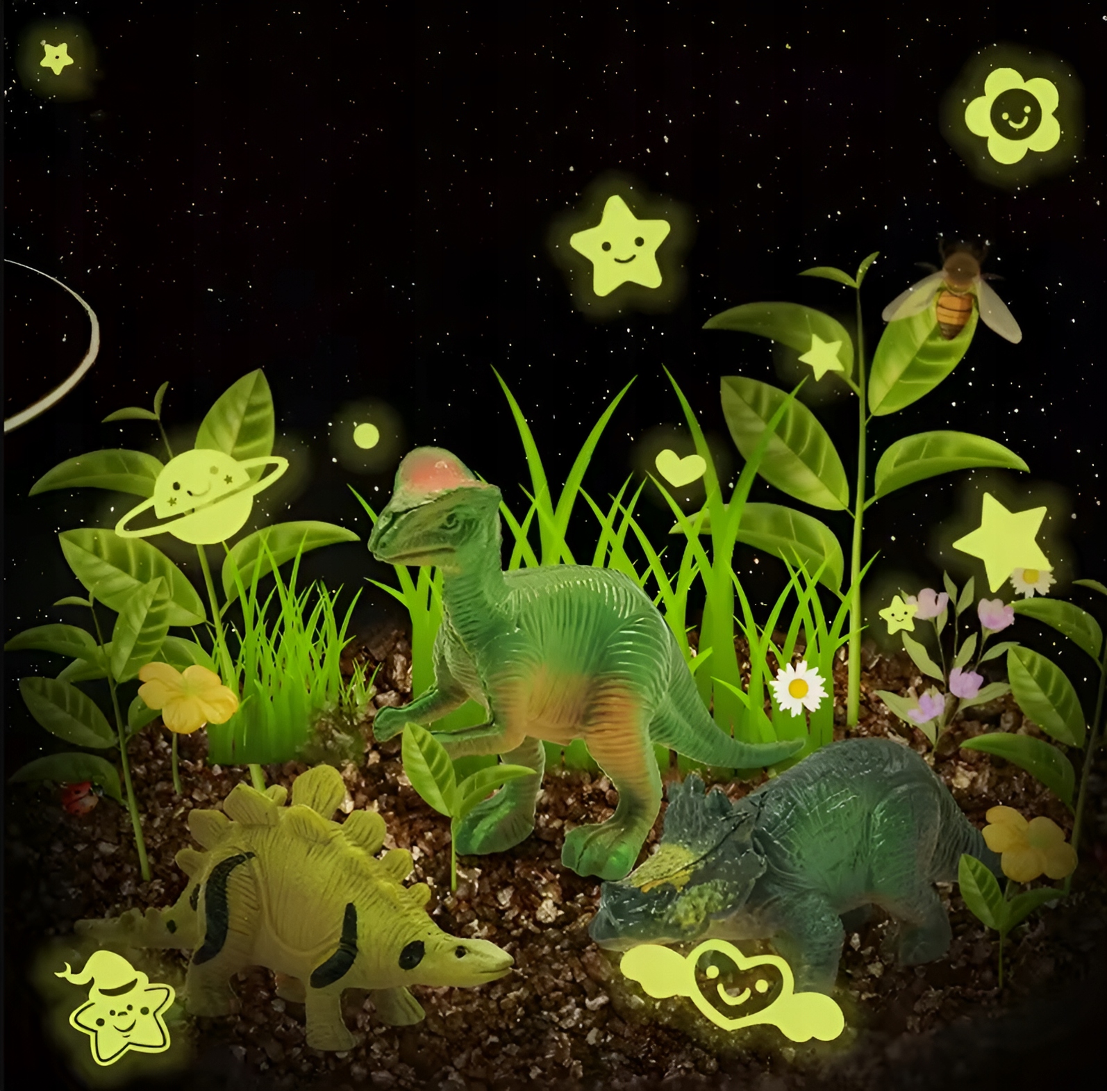 Після темряви сад здобуває унікальний шарм завдяки світим наклейкам та ніжному освітленню. Ідеальне доповнення до нічних пригод!