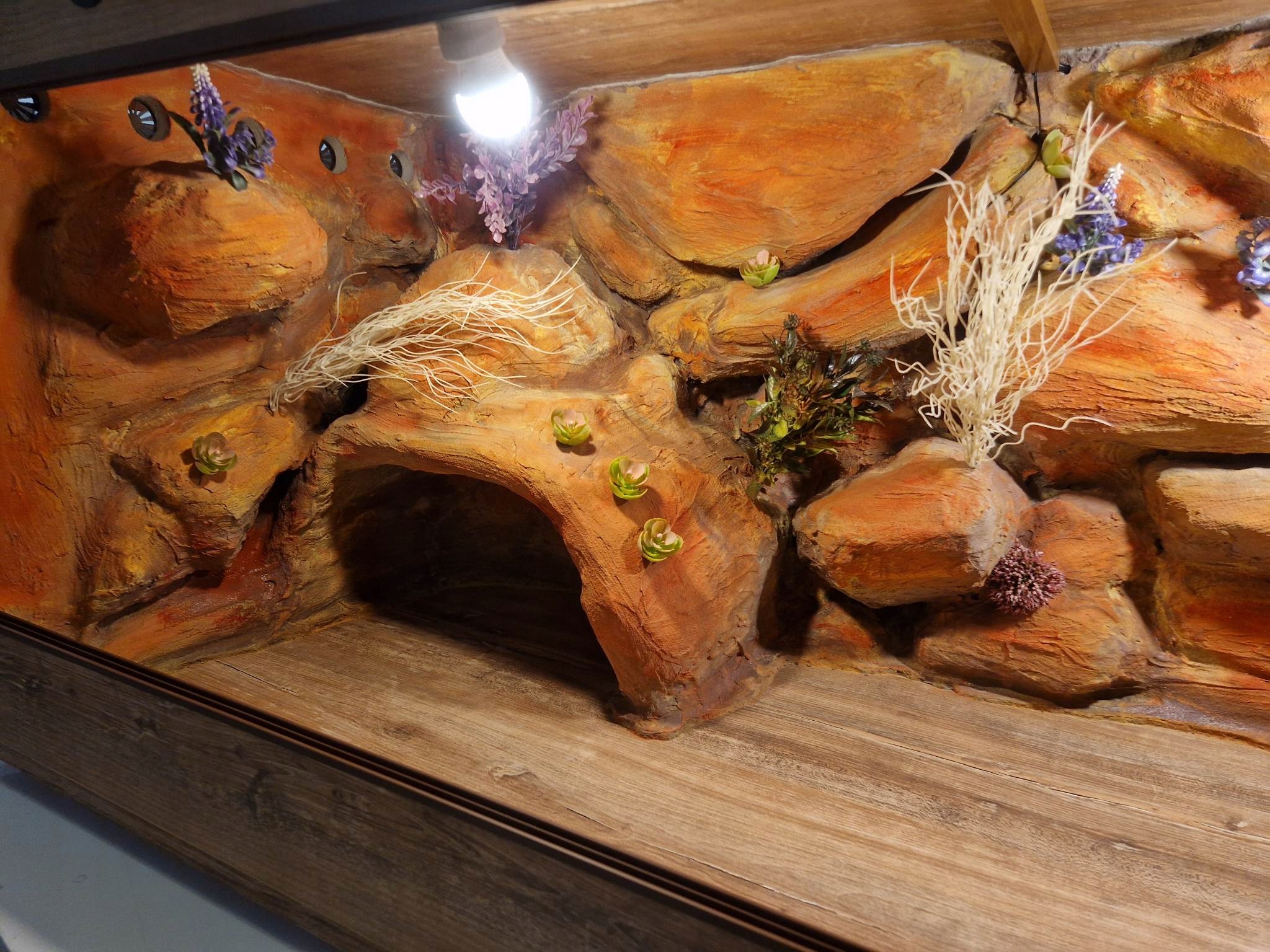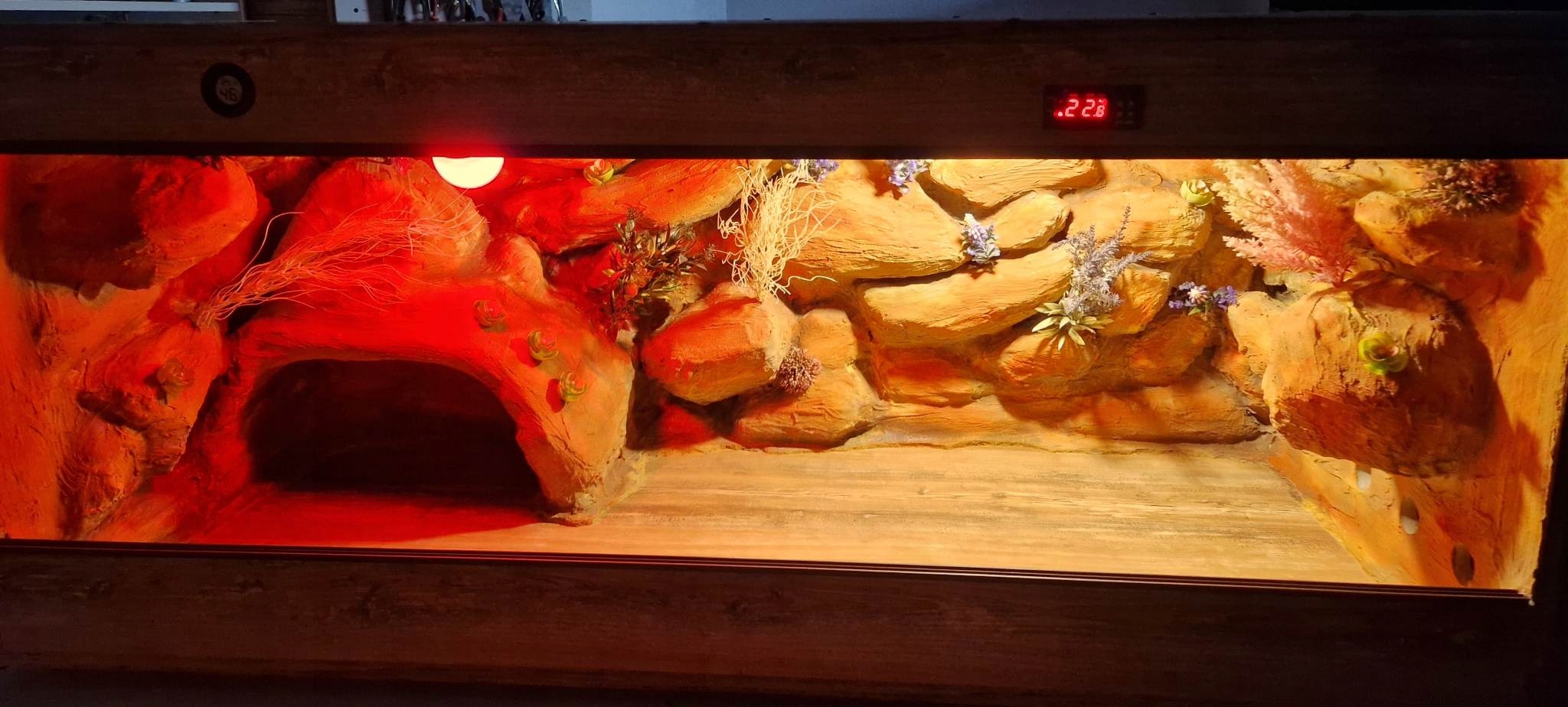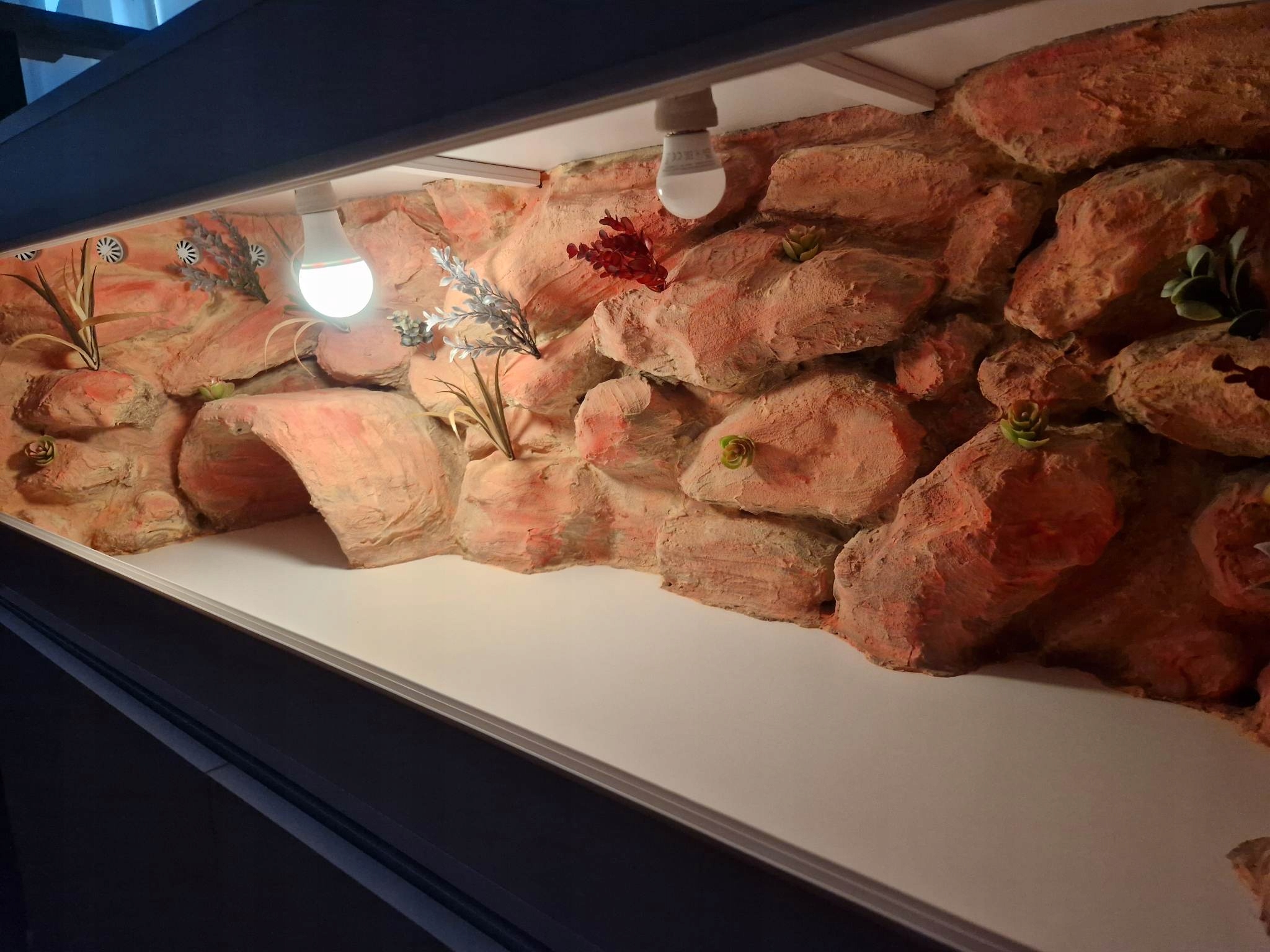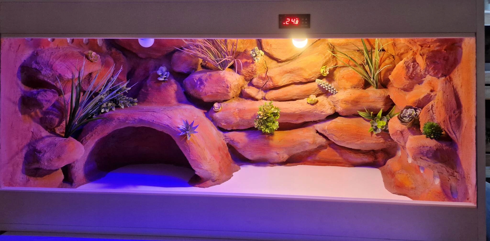 - На фотографіях представлені тераріуми, виготовлені нами на індивідуальне замовлення і можуть бути зразком для наступних робіт. Тераріуми, які ви замовляєте, не будуть копіями представлених нижче, але вони можуть бути схожими. Ми будуємо кожен танк з нуля. Покупець може вибрати розташування каменів (якщо це можливо) і колір фону тераріуму.