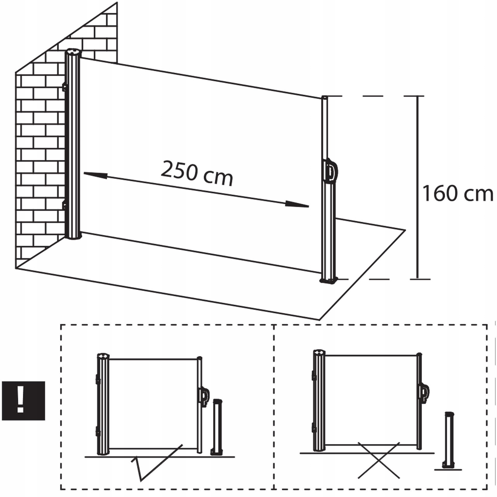 Набір включає повні інструкції та необхідні елементи , з якими ви можете легко ви збираєте бічний тент у вашому саду. Спочатку прикріпіть касету з тканиною до стіни, потім кронштейн до землі, на обраній вами відстані.