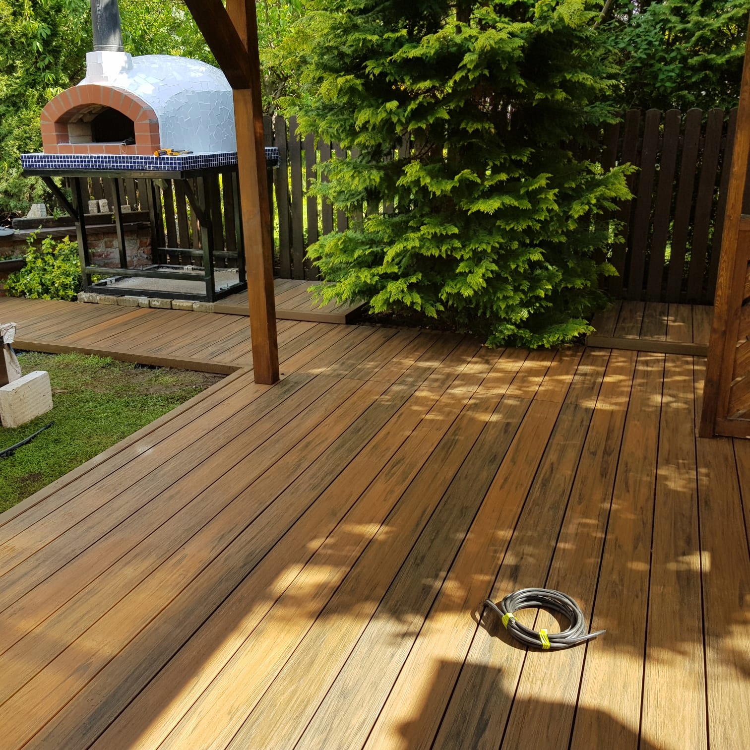 Композитна дошка Premium ідеально імітує натуральну деревину, зберігаючи переваги пластику, особливо довговічність і легко підтримувати в чистоті. Завдяки сучасній технології виробництва дошка має характерну тривимірну поверхню. Деревний малюнок вибитий на поверхні за допомогою пресів при високих температурах із зовнішнім полімерним покриттям, яке оточує дошку з усіх боків і захищає її від плям, втрати кольору та стирання. Дошки стійкі до несприятливих погодних умов, гниття, гниття та комах, і в той же час надзвичайно ефектні, неперевершені в облаштуванні просторів поза будівлею. Додатковою перевагою є те, що дошка є двосторонньою, тому ми можемо оформити її з двох сторін залежно від колірних уподобань.