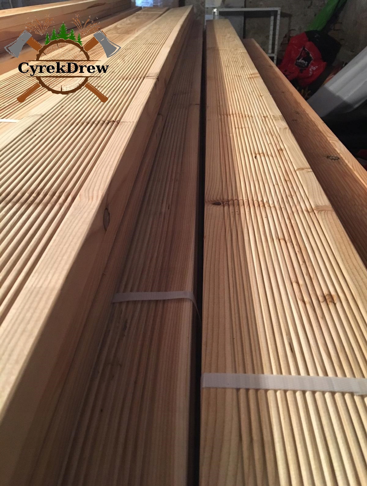 Наша пропозиція також включає бруси модрини, придатні для виготовлення конструкції для тераси.