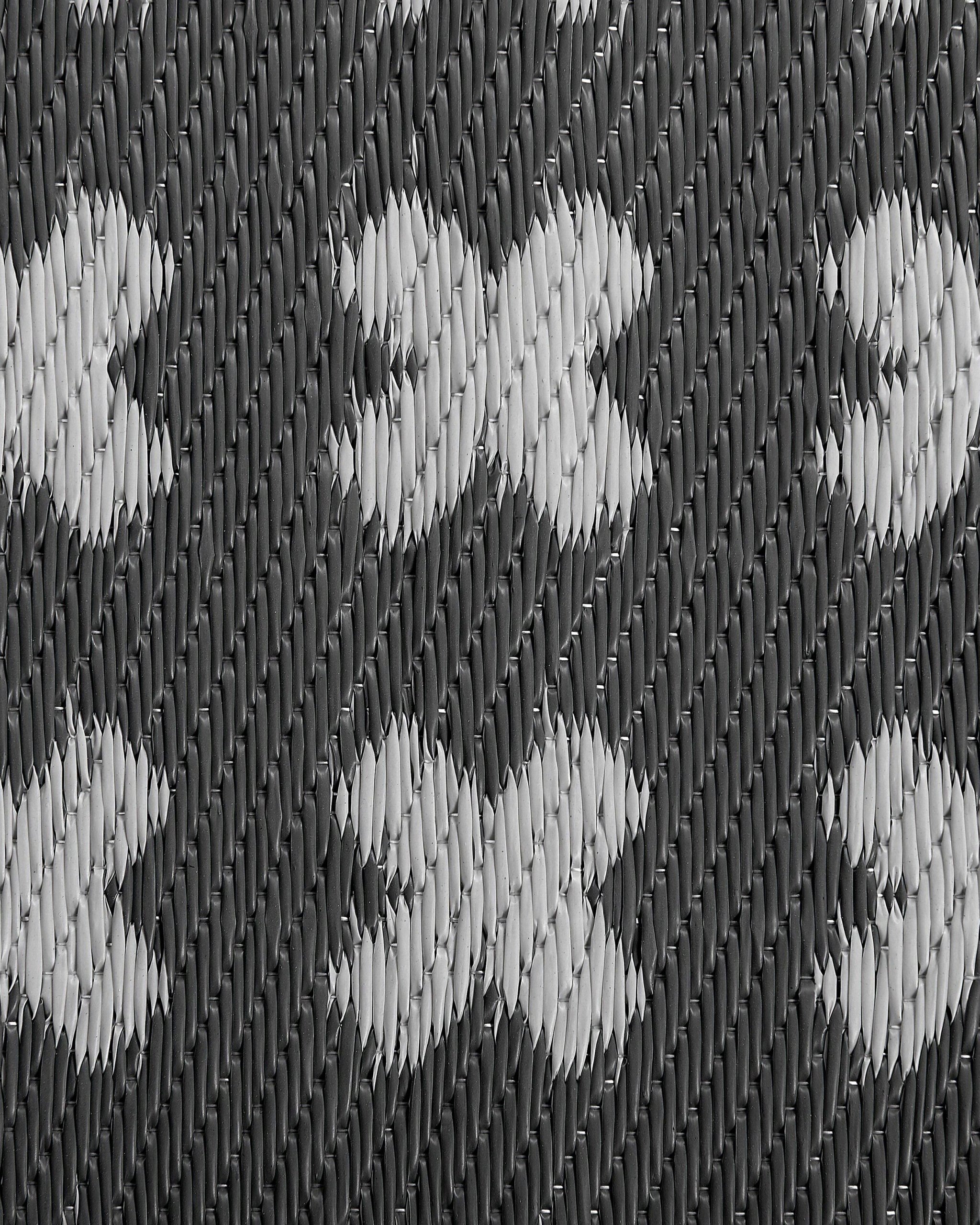 Завдяки цьому килиму ви збагачуєте свою вітальню, зал, терасу чи сад сучасним акцентом. Виготовлений з матеріалів, отриманих в результаті переробки, це є екологічно чистим, і довговічним, і простим для догляду. Килим ідеально доповнить домовленості в традиційному, сучасному та мінімалістичному стилі, а його геометричний малюнок принесе подих свіжості в будь -яку кімнату.