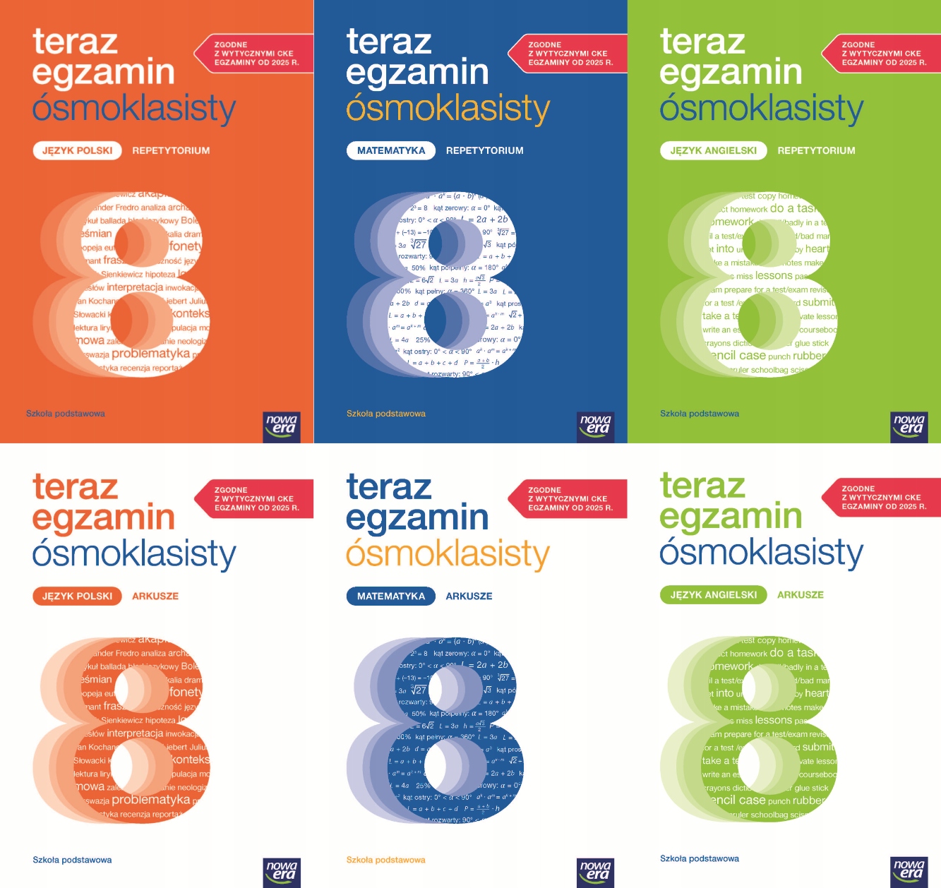 Teraz egzamin ósmoklasisty. Komplet 6 sztuk - 3x Repetytoria i 3x Arkusze