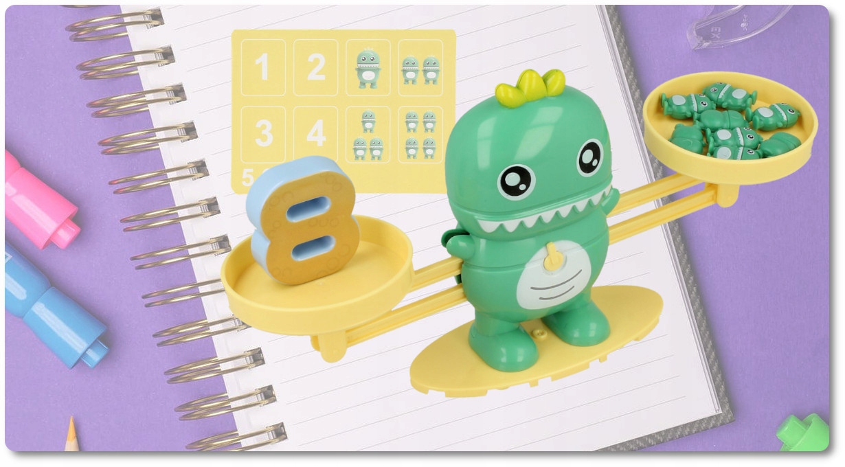 Отже, якщо число «6» покладено на один лоток, ваша дитина повинна порахувати «6» фігурок МОНСТРОВ на іншому лотку, щоб вирівняти рівень ваги.