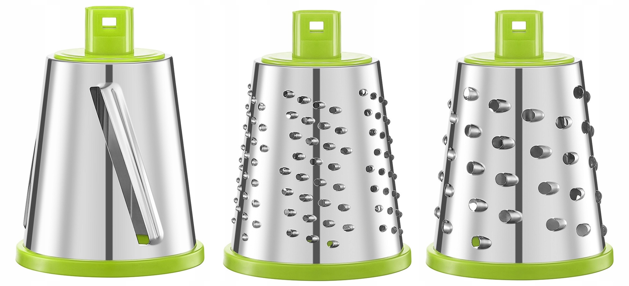 - 3 змінні сталеві барабани: дрібна решітка, товста решітка, нарізка