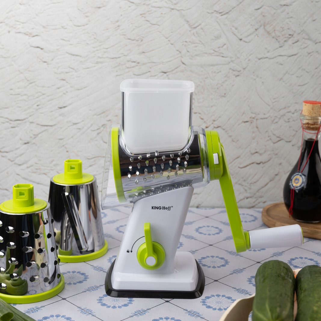 Зробіть повсякденне приготування їжі легшим за допомогою ручної барабанної терки KINGHoff KH-1960! Це багатофункціональний інструмент, який допоможе швидко і без зусиль приготувати овочі, фрукти та сир. Ідеально підходить для домашніх кухонь, ресторанів, їдалень і для кожного ентузіаста кулінарії!