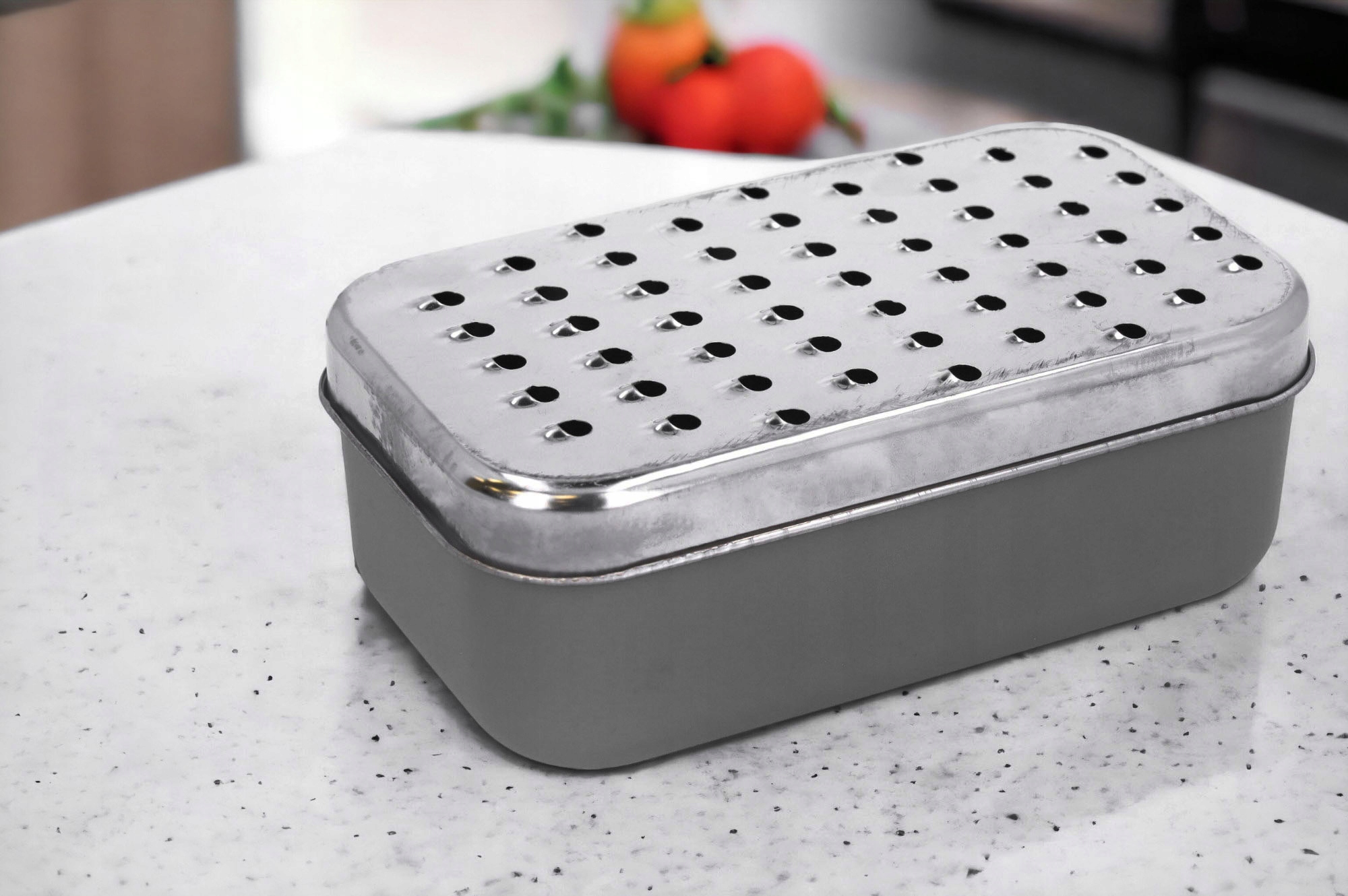 Терка для сиру, овочів, картоплі + контейнер, 2 леза, нержавіюча сталь, сіра