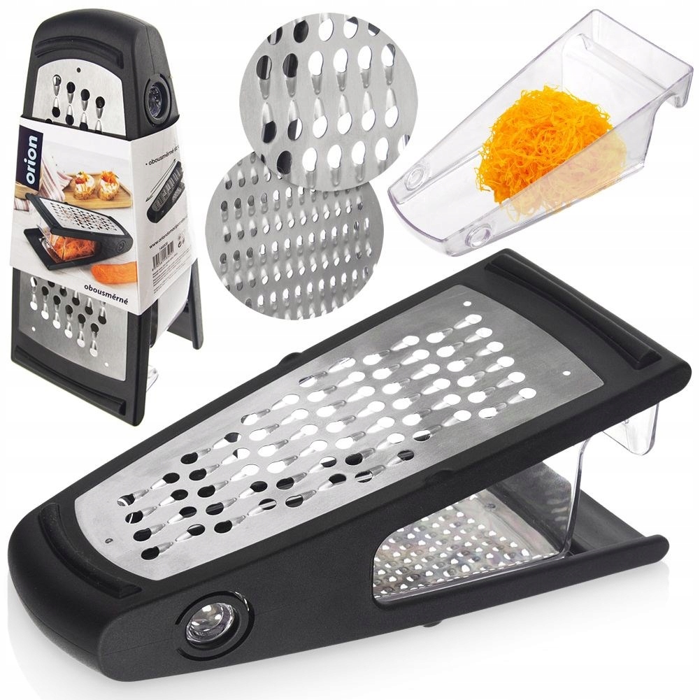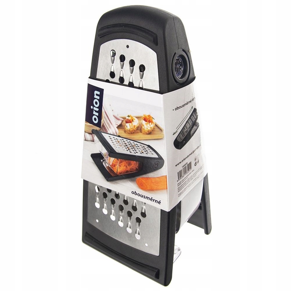 Практична - кухонна терка з контейнером на 2 сторінці, ідеально підходить для тертя різних типів інгредієнтів. Оснащений двома гострими лезами для різних завдань. Кухонна версія 24 х 11 х 10 см. Суцільний - виготовлений з найвищої якості нержавіючої сталі в срібному та чорному пластиці. Контейнер виготовлений з довговічного пластику прозорим кольором. Терка оснащена силіконовою основою в чорному кольорі. Підходить для миття посудомийної машини. Non -slip -Tarka має не -слиз, силіконова підставка з обох боків. Завдяки силіконової основи, терка не рухається під час використання. Комфортне використання - обладнаний знімним контейнером, використовується для збору тертових продуктів і дозволяє легко перенести їх на інші страви або безпосередньо використовувати в страві. Universal - зерна, оснащена двома різними лезами: маленькі очі (2 мм) і великі очі (6 мм). Ми можемо використовувати овочі, фрукти, сир, шоколад, корицю, мускатний горіх та багато інших. Універсальна кухонна терка з контейнером та двома різними лезами, кожен з них призначений для іншої діяльності. Він має зручний контейнер і не -скапінки, що полегшує його використання. Легко чистити і зручно. Крім того, контейнер запобігає поширенню тертових продуктів по всій кухні, що полегшує обслуговування порядку. Необхідний на кожній кухні. Оригінальний продукт чеського бренду Orion. Виробляється відповідно до європейських стандартів.