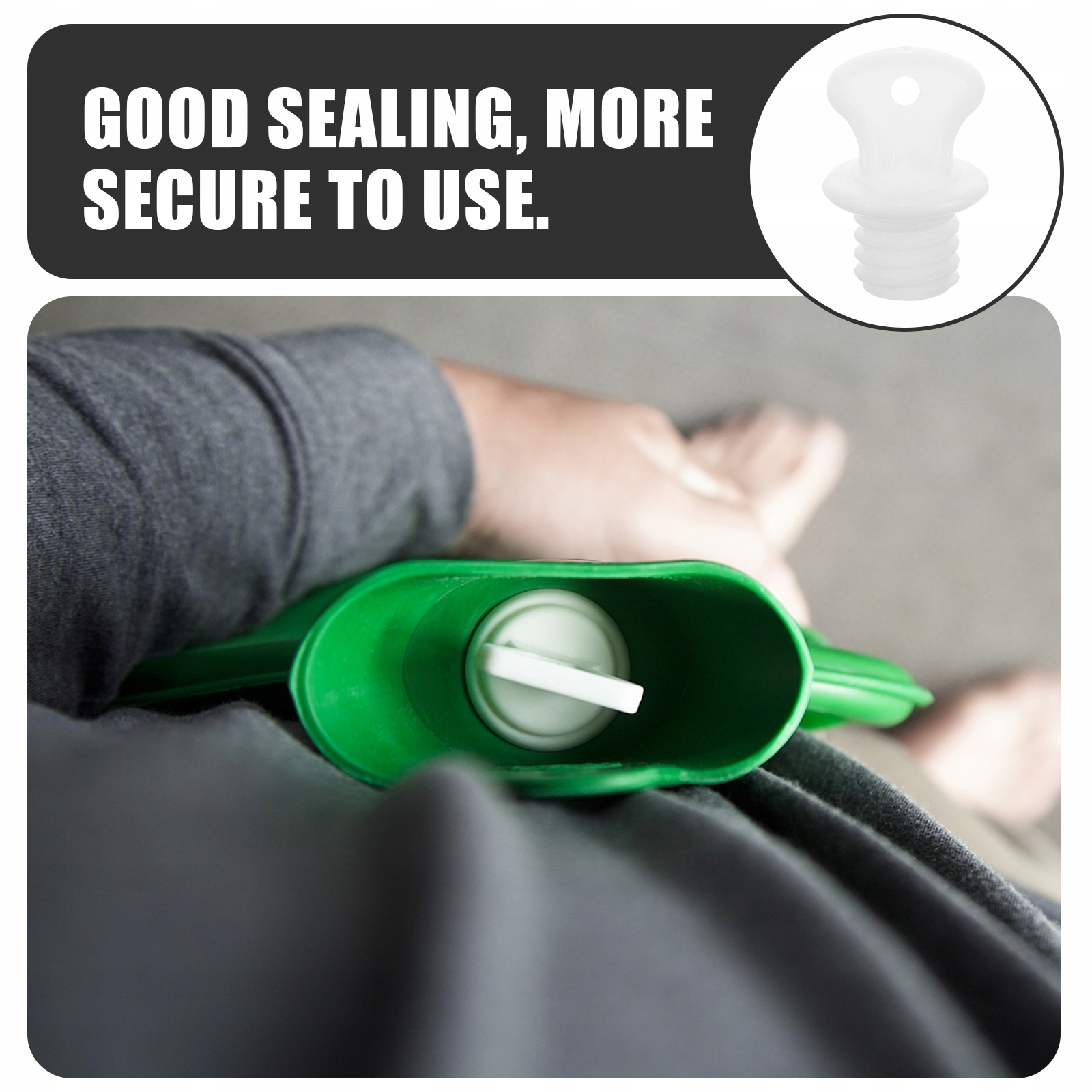 ✅Ця пробка для пакета з гарячою водою виготовлена з гумового матеріалу, який запобігає старінню та не має специфічного запаху. Пробка мішка для гарячої води є відносно гнучкою, нелегко пошкодити отвір мішка, і добре зберігає тепло, він завжди може підтримувати максимальну площу отвору мішка. Висока щільність, непросто зламати.
