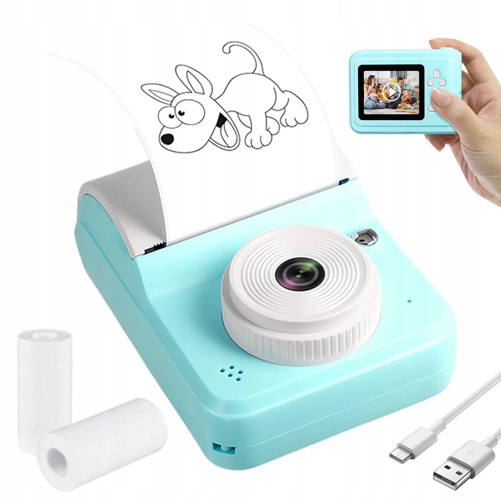 Безпосередня друкарська камера для дітей - 1080p Цифрова камера з великим 2,4 -денним екраном, тепловим принтером, MP3 -програвачем, акумулятором