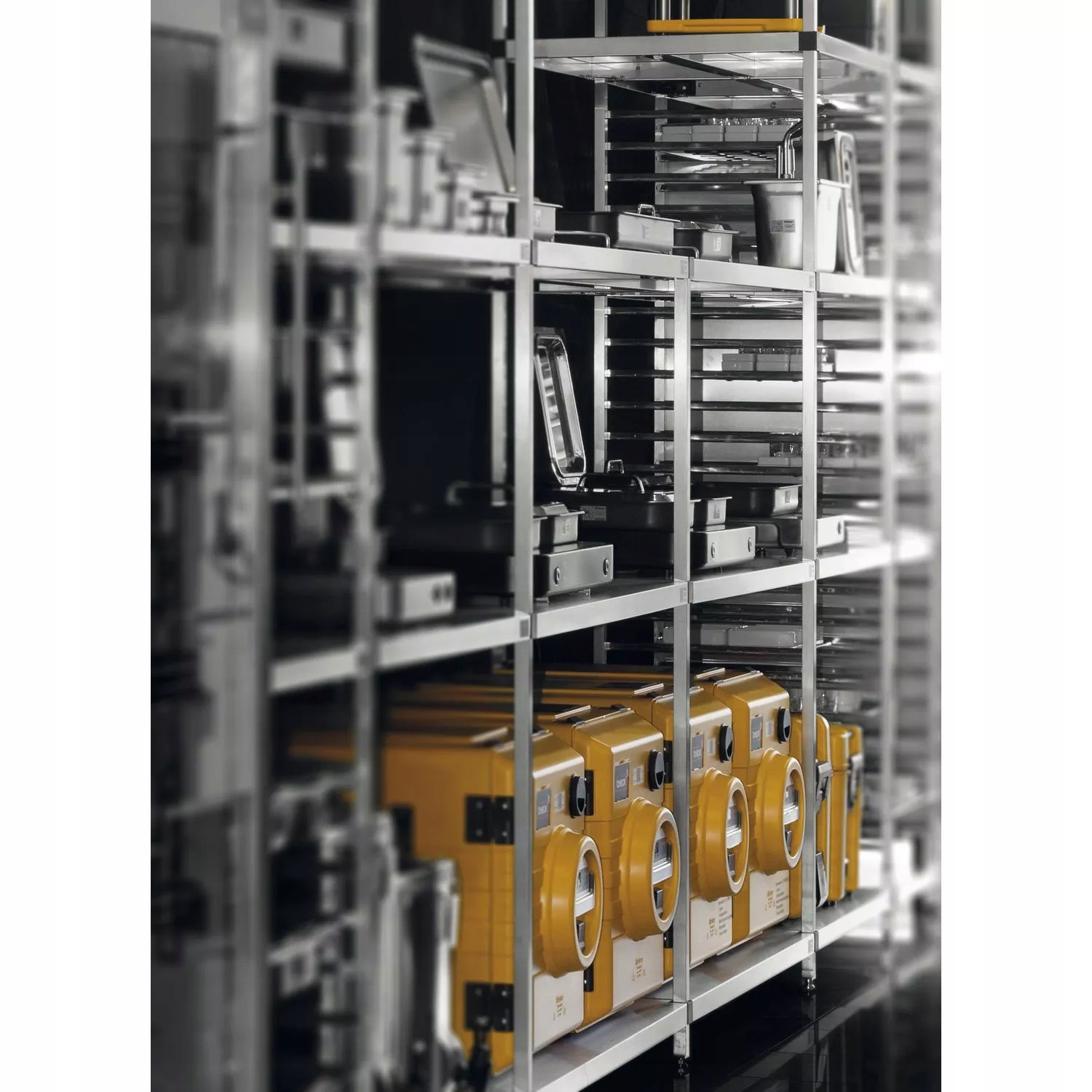 Termoport Rieber 100 KB, made of light and durable plastic with double walls, safe transport, maximum reaching temperature + 95 ° C, heating power 500 W, rated voltage AC 230 V 1N 50 Hz, weight 8.3 kg, for Gastro 3 x GN 1/3 200 mm, 2 x GN 1/2 200 mm mm, loaded from above, heated