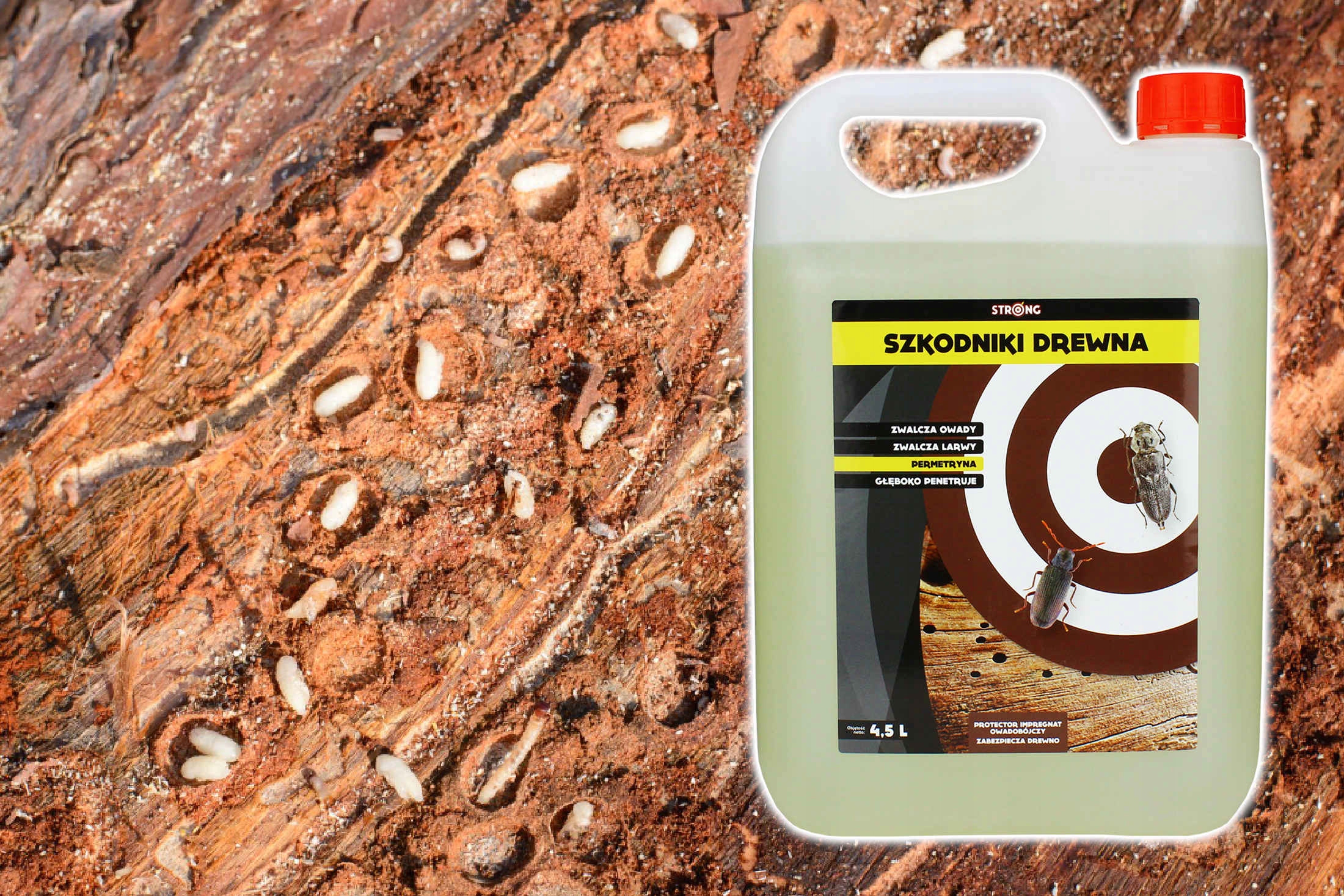 Інсектицидне просочення СИЛЬНИЙ ДЛЯ ШКІДНИКІВ ДЕРЕВИНИ - це захисний засіб нового покоління для боротьби зі шкідниками деревини. Особливо ефективний проти листових кліщів (Anobium Punctatum), листових кліщів (Hylotrupes bajulus), пульпових кліщів (Lyctus brunneus), сріблястих кліщів (Sirex gigas), термітів, короїдів та інших.