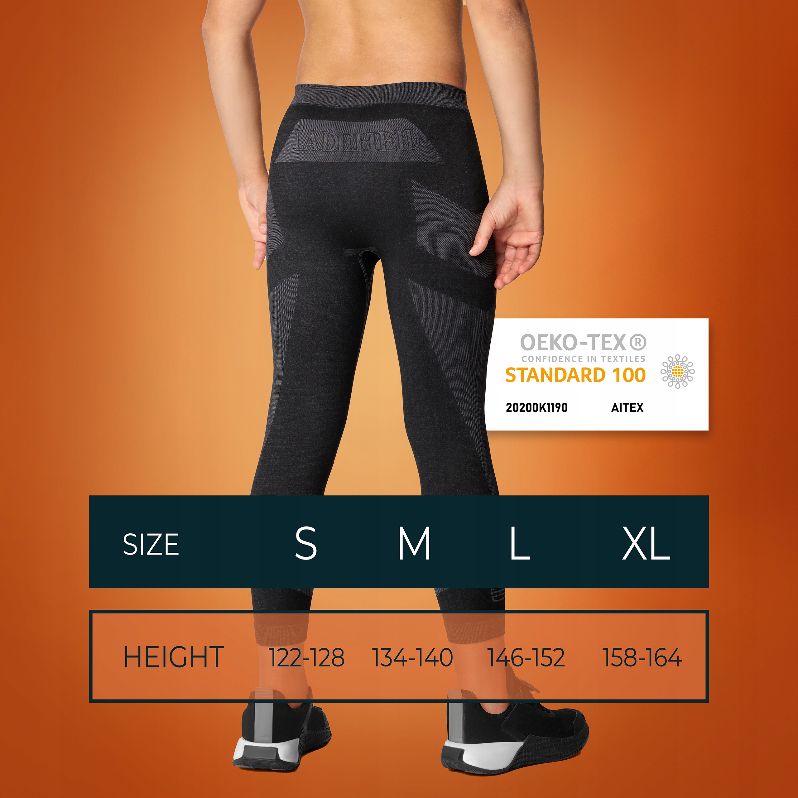 Наші термоактивні легінси мають міжнародний сертифікат якості OEKO-TEX Standard 100. Це означає, що продукт не містить речовин. шкідливі та потенційно шкідливі для людини.