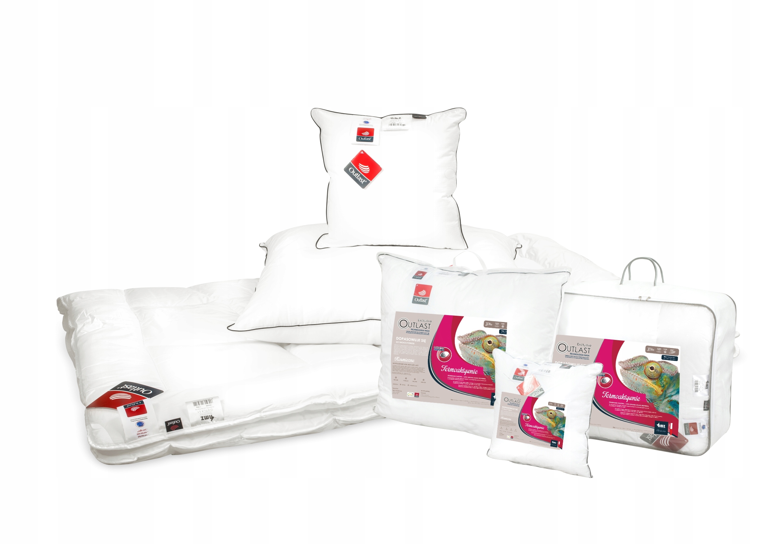 - волокно OUTLAST. Удосконалене волокно, спочатку створене NASA для скафандрів. Заслуговує на увагу головна особливість волокна, що дозволяє оптимізувати температуру під час сну. Зменшує перегрів і потовиділення тіла, даруючи приємне відчуття прохолоди. Зберігаючи надлишок тепла, він запобігає перегріванню та, якщо необхідно, віддає накопичене тепло, щоб запобігти охолодженню.