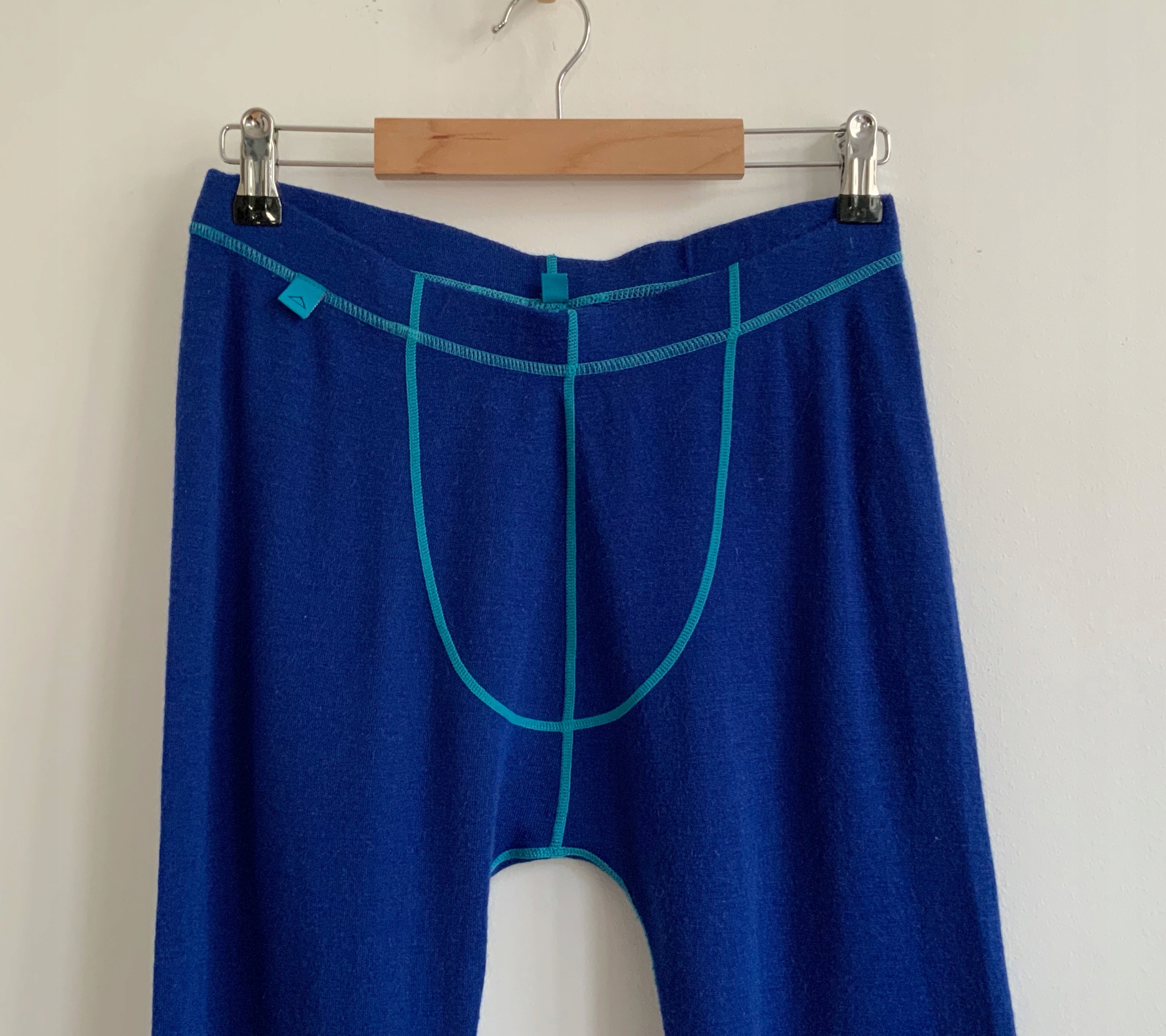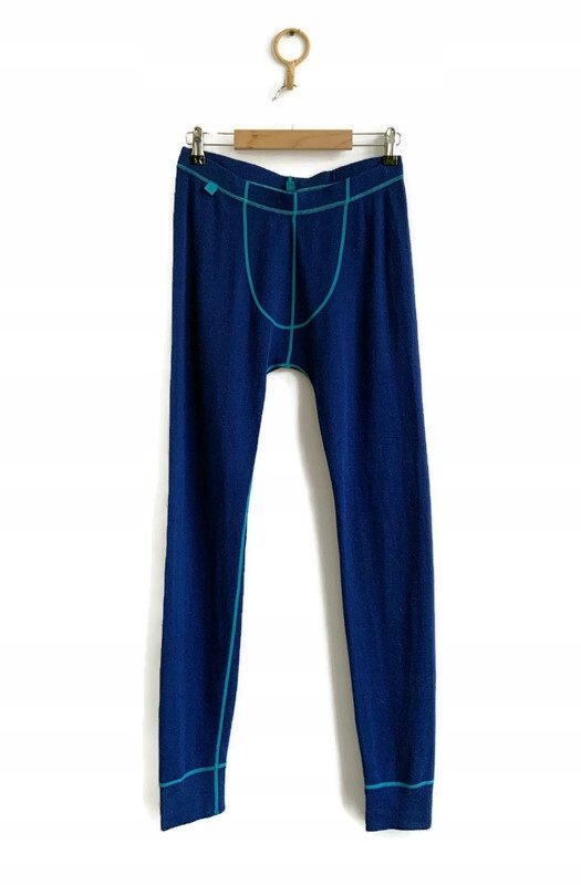 Довгі термоактивні легінси з 70% мериносової вовни, блакитної мериносової вовни. Плоскі, бірюзові шви. Еластичний пояс в тунелі. Спинка вище. Вставка логотипу спереду. Ідеальний стан.