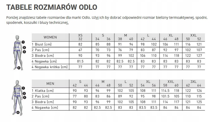Щоб найкраще вибрати термоактивну білизну ODLO, дотримуйтесь таблиці нижче: