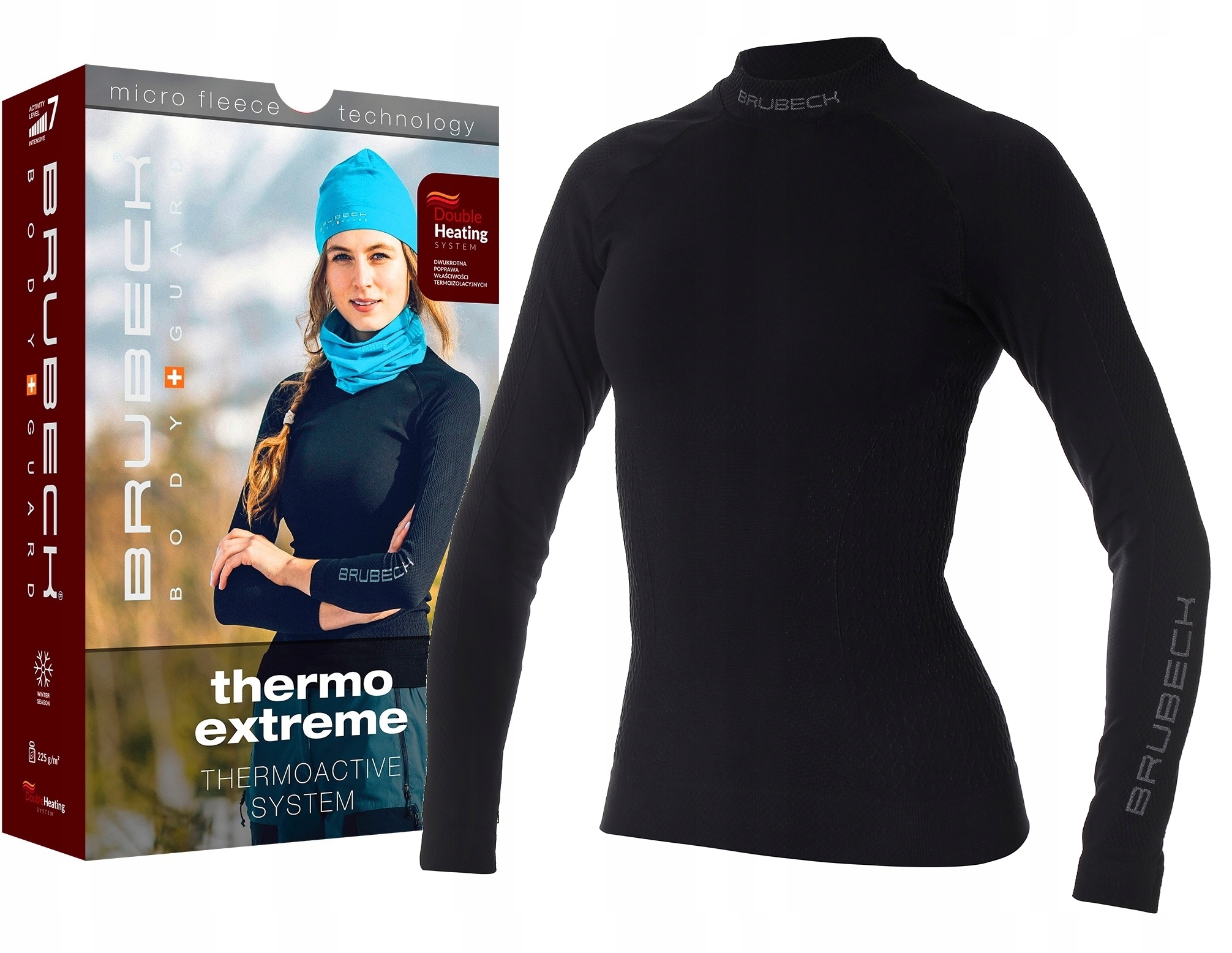 Технологія Double Heating Micro Fleece Technnology System від Brubeck – це інноваційна технологія, яка передбачає вибіркову механічну зміну в’язаної поверхні. В результаті виходить м’яка і ніжна тканина, приємна на дотик. Технологія Double Heating подвоює теплоізоляційні властивості та комфорт використання.