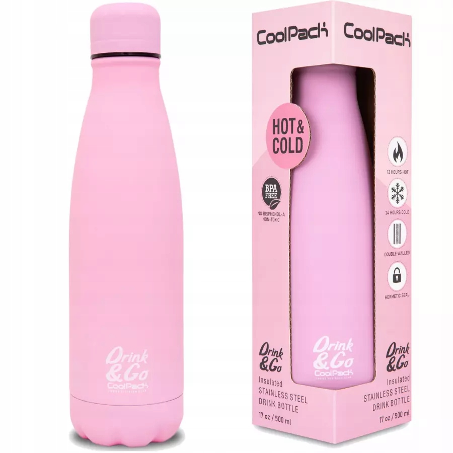 Подбайте про здоров'я та зволоження свого тіла з термосом Drink Go від Coolpack. Відновлення рідини в організмі надзвичайно важливо, і тепер це може бути дуже легко! Зручний, місткий і міцний. Пляшка виготовлена з двостінної нержавіючої сталі і відмінно збереже температуру напою - низьку (24 години) або високу (12 годин). Затвор закручується і має герметичність. Термос Drink Go від Coolpack у чарівних кольорах вміщує 500 мл рідини.