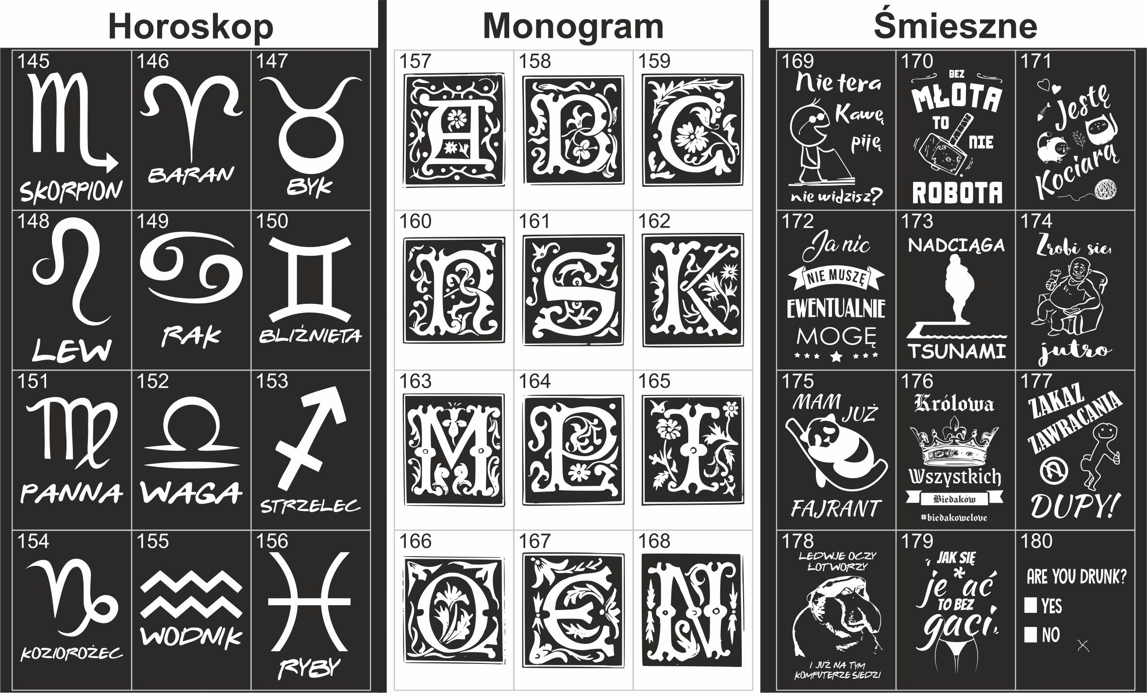 На запит клієнтів ми персоналізуємо наші проекти або виконувати ваші проекти. З цією метою нам потрібні файли у криві у форматі cdr/ai/eps/pdf або одиночні файли jpg/png (чорний на білому тлі)
