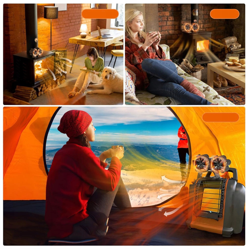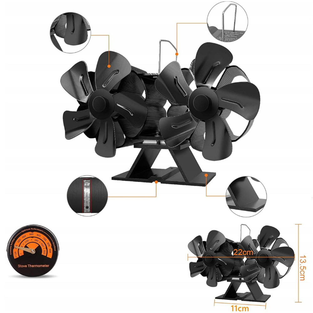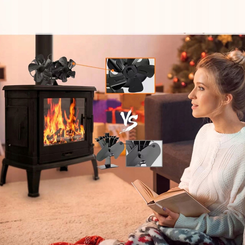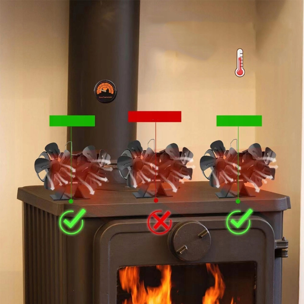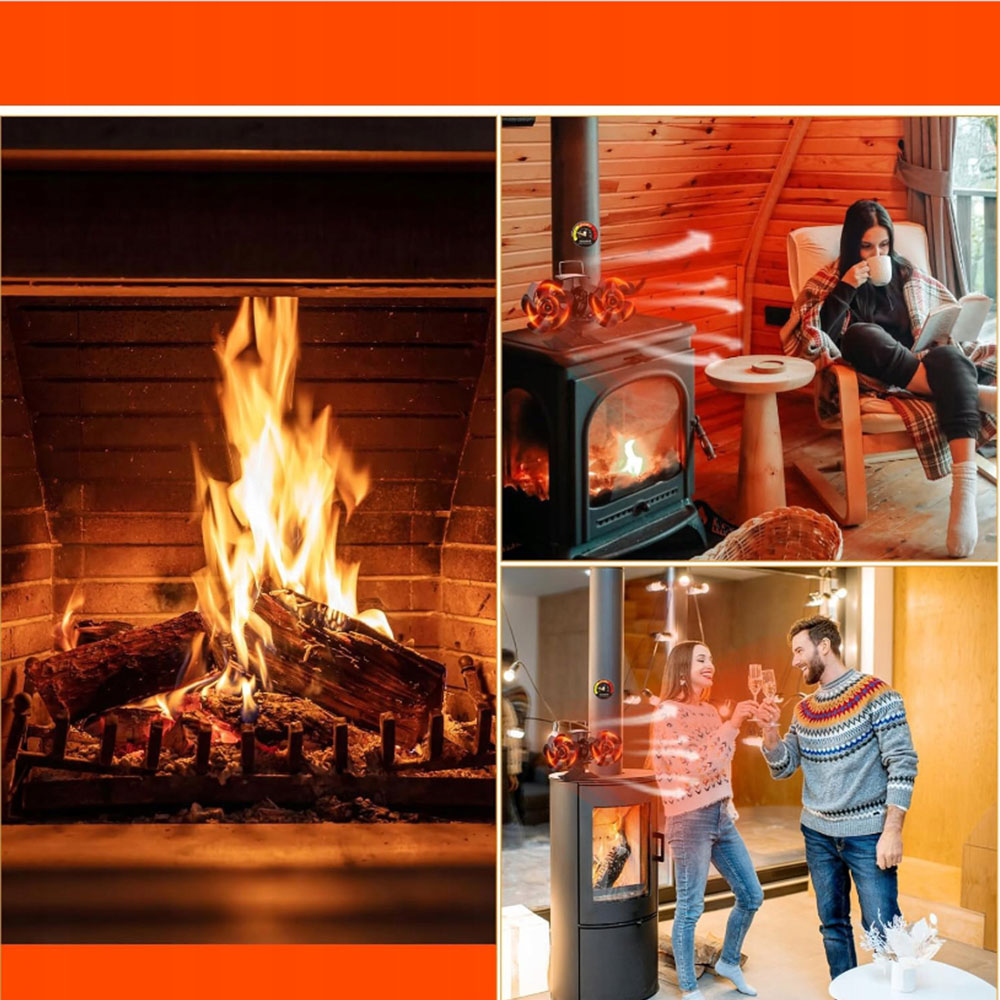 TERMOELEKTRYCZNY WENTYLATOR KOMINKOWY 10 ŁOPATKOWY WENTYLATOR + TERMOMETR