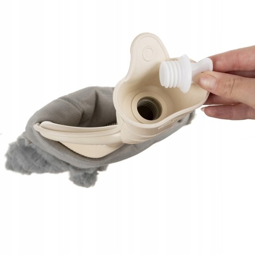 - М'ЯКА ПЛЮШЕВА ЧОХЛА - грілка має пухнасту кришку, яка м'який на дотик і ніжний для чутливої шкіри малюка, завдяки чому ідеально імітує м'яку іграшку. Вона дуже герметична, зручна у використанні та легко наповнюється.