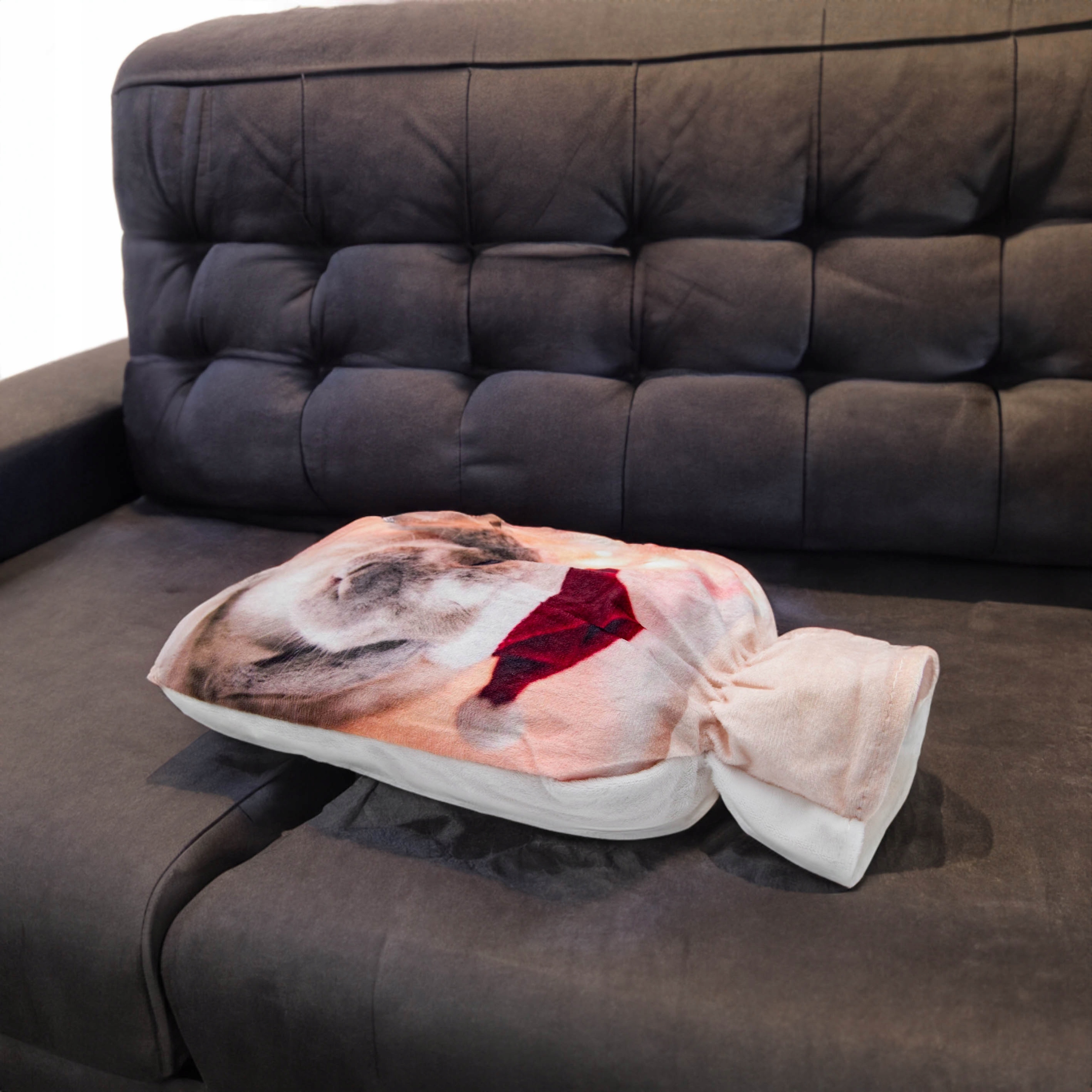 Грілка виготовлена з гуми найвищої якості, стійкої до високих температур. Максимальна місткість - до2 літрів води. Поміщена в декоративну м'яку обкладинку, що нагадує светр, вона зробить кожен день, навіть найхолоднішої осені чи зими, приємнішим. Він використовується для нагрівання або охолодження певного місця або всього тіла. Ідеально підходить як маленький подарунок.