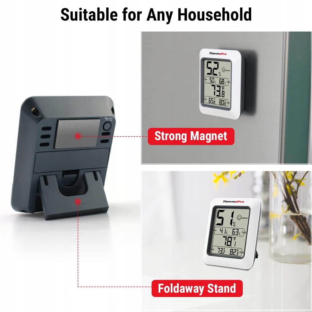 Точне вимірювання: Пристрій з термометром і гігрометром забезпечує результати вимірювання температури в діапазоні від -50°C до 70°C, який можна вибрати в °C або °F.