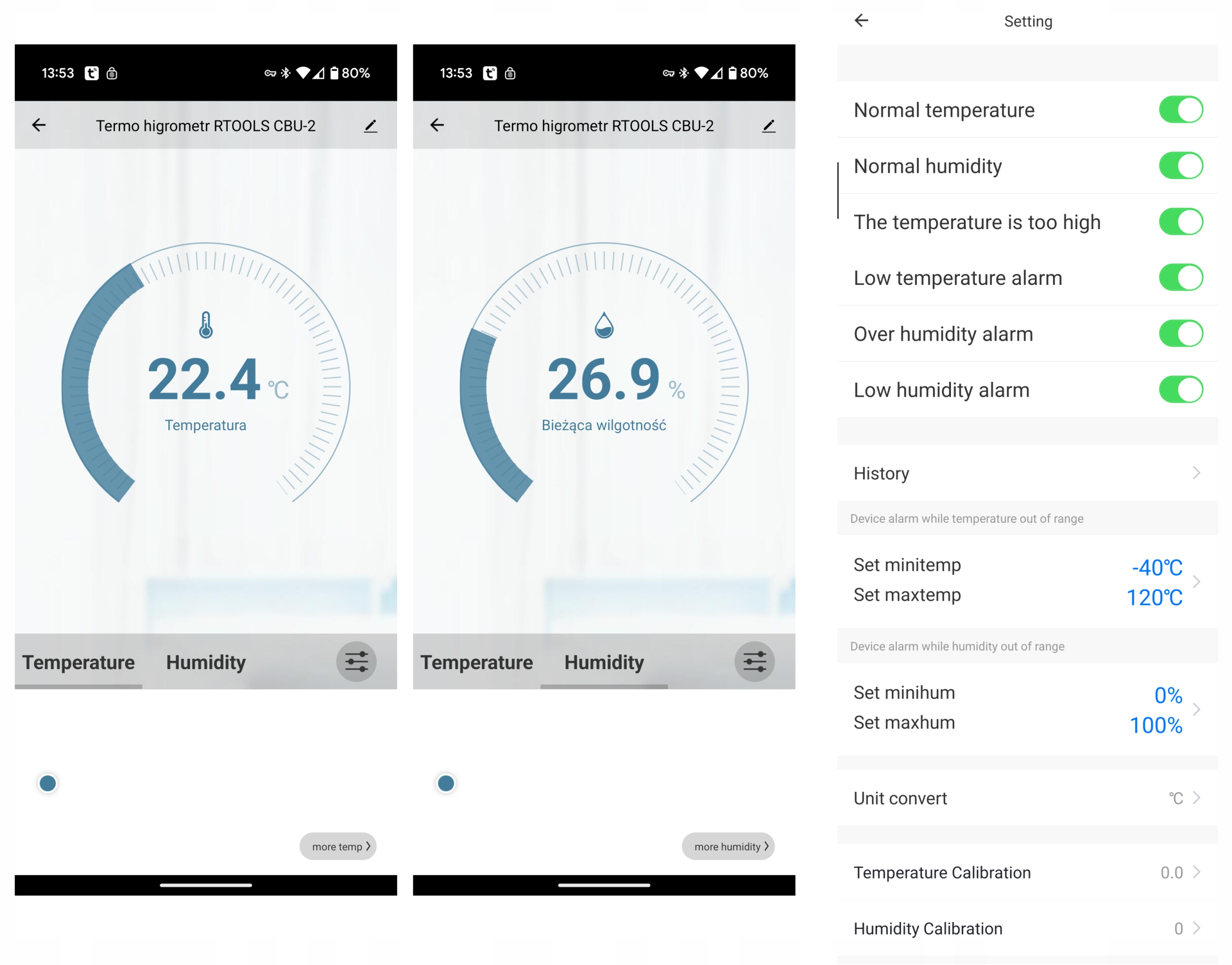 - Сигнали: установіть сповіщення, коли температура або вологість перевищують встановлені значення.