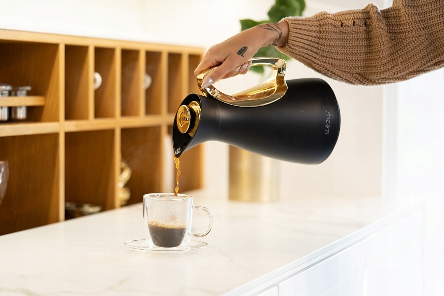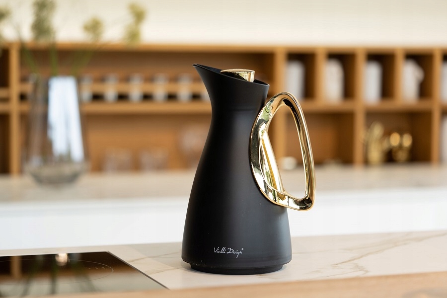VIALLI DESIGN CONFERENCE ТЕРМОС ЧОРНИЙ І ЗОЛОТИЙ ДЛЯ ХОЛОДНИХ І ГАРЯЧИХ НАПОЇВ ALESSIA 1 ЛІТР