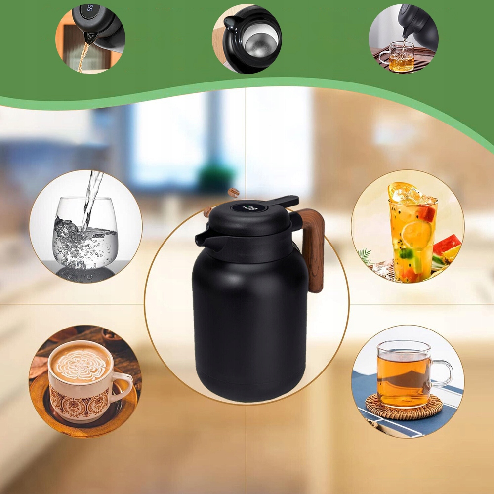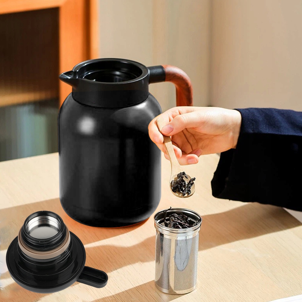 Внутрішній глечик виготовлено з нержавіючої сталі 316 (більш стійка до корозії, ніж 304), у поєднанні з двошаровою вакуумною ізоляцією, яка підтримує тепло понад 8 годин. Зовнішня частина глечика повністю стійка до опіків.