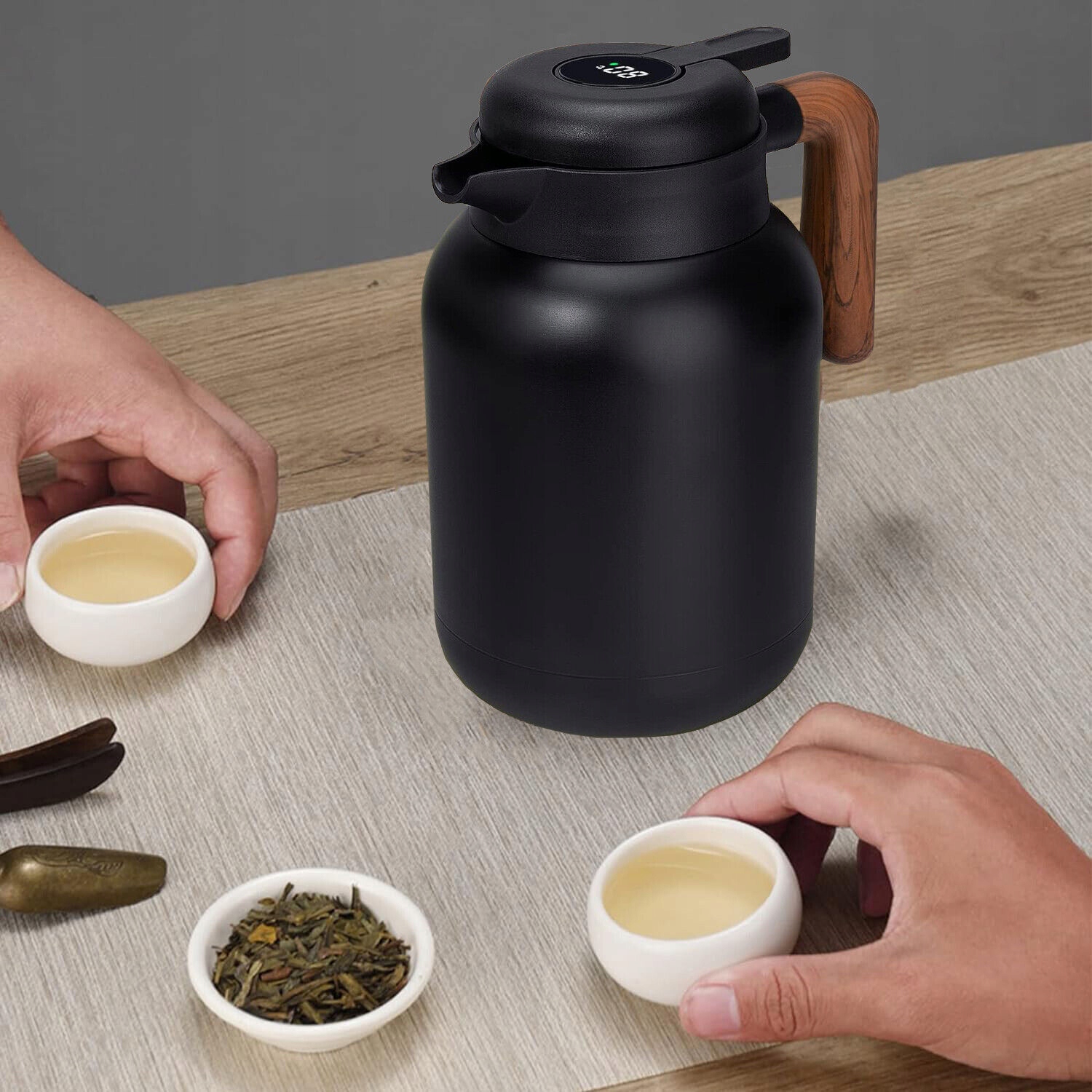❄️ Розумний дисплей температури -Кришка глечика з розумним дисплеєм температури дозволяє миттєво контролювати температуру ваших напоїв, гарантуючи, що вони нагріті чи охолоджені.